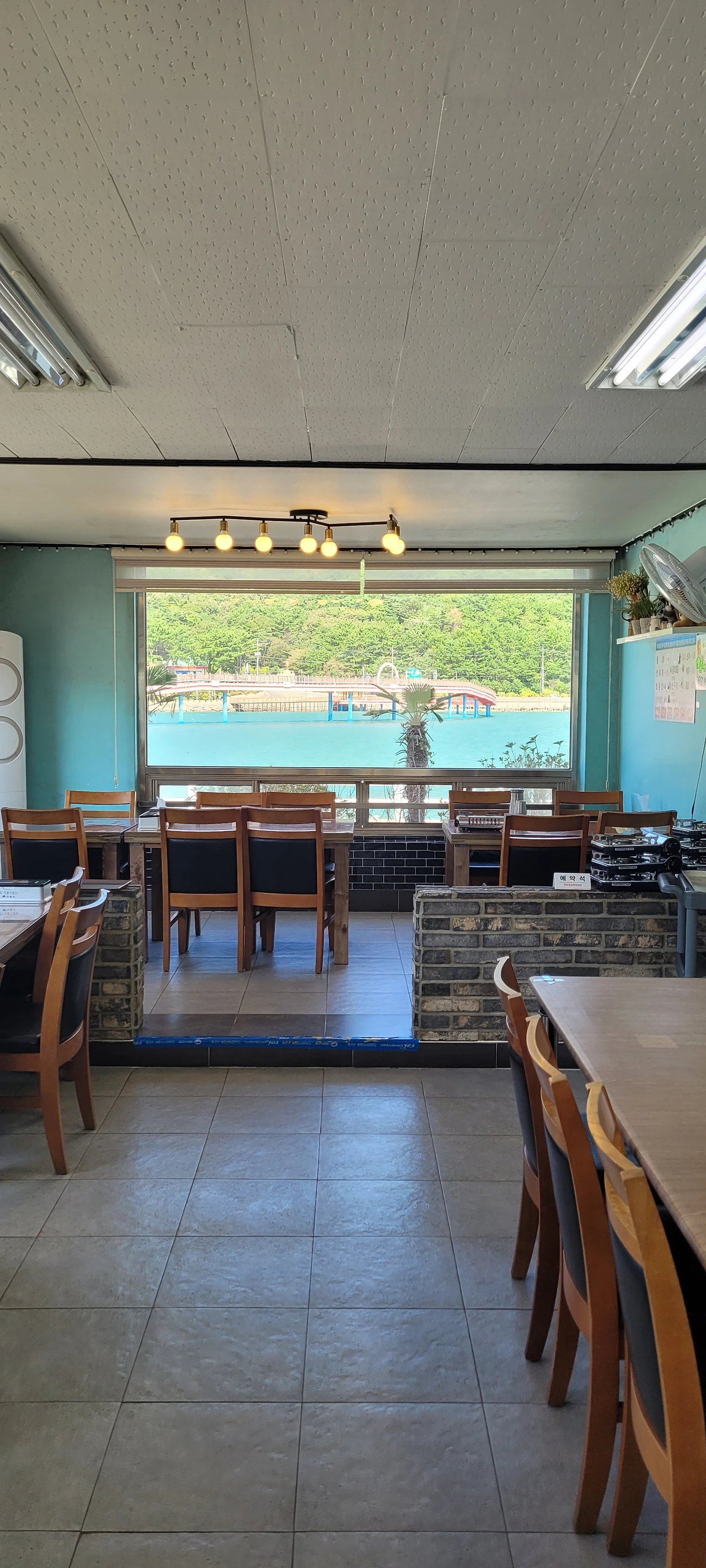 식당 창밖 풍경이 입이 떡 벌어지게 아름답다.