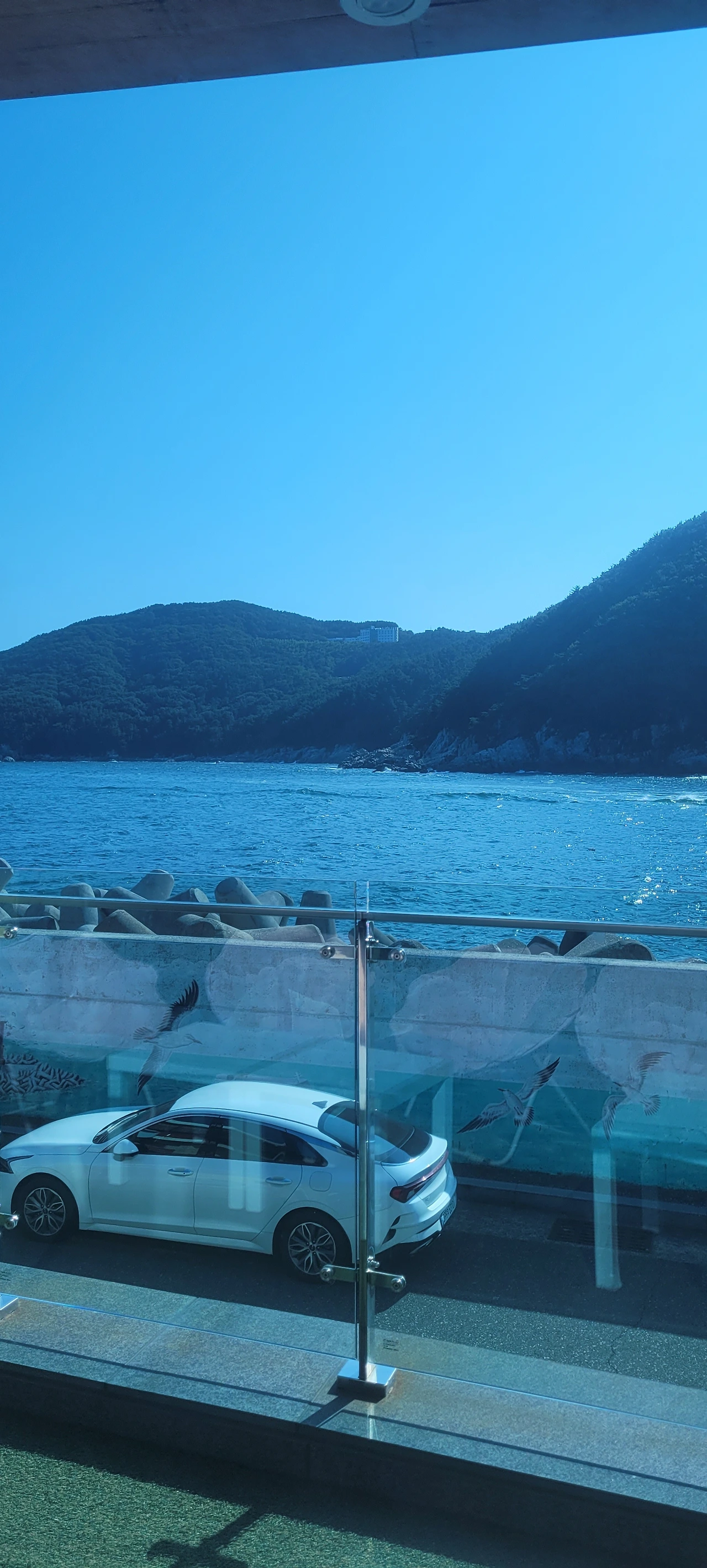 창밖으로는 간간이 쪽빛 바다가 얼굴을 내밀다 사라진다.
