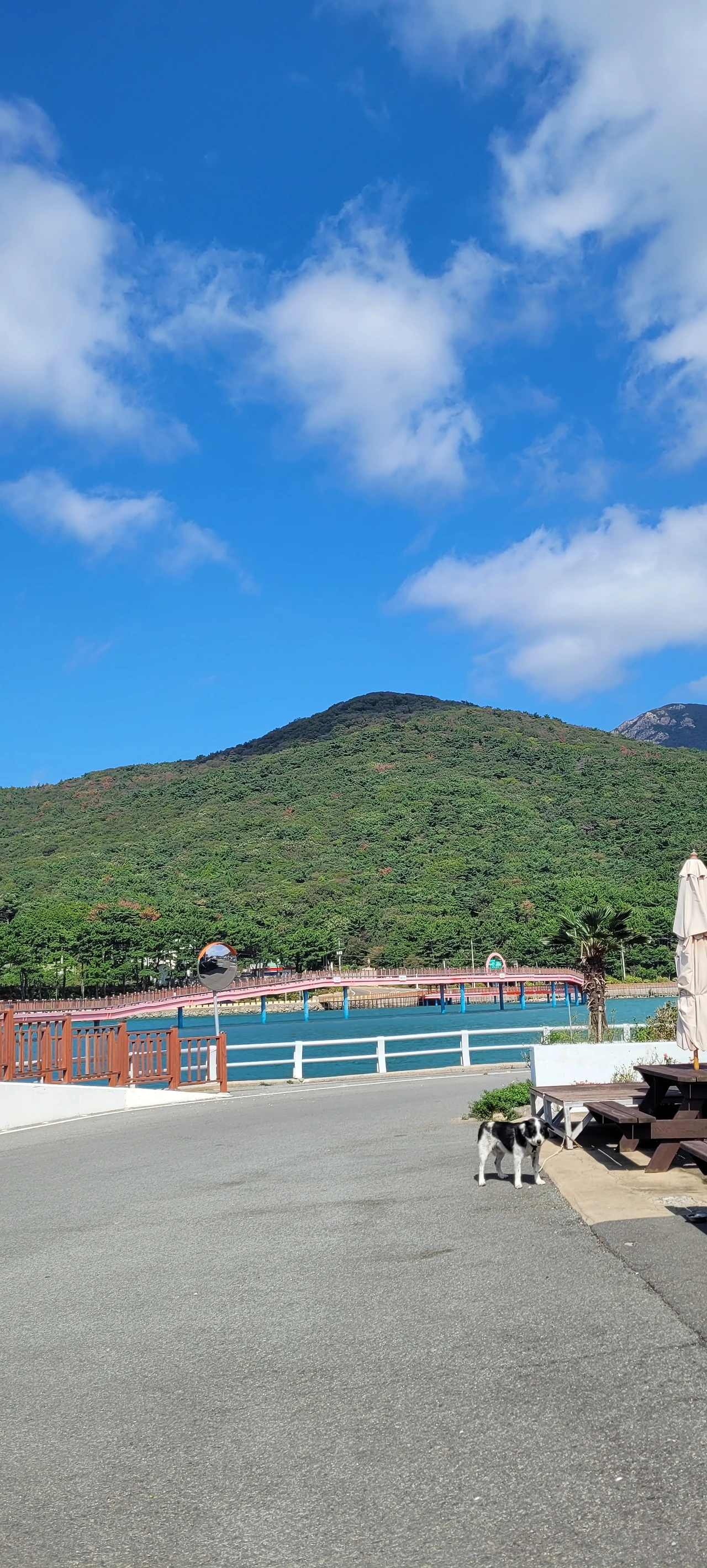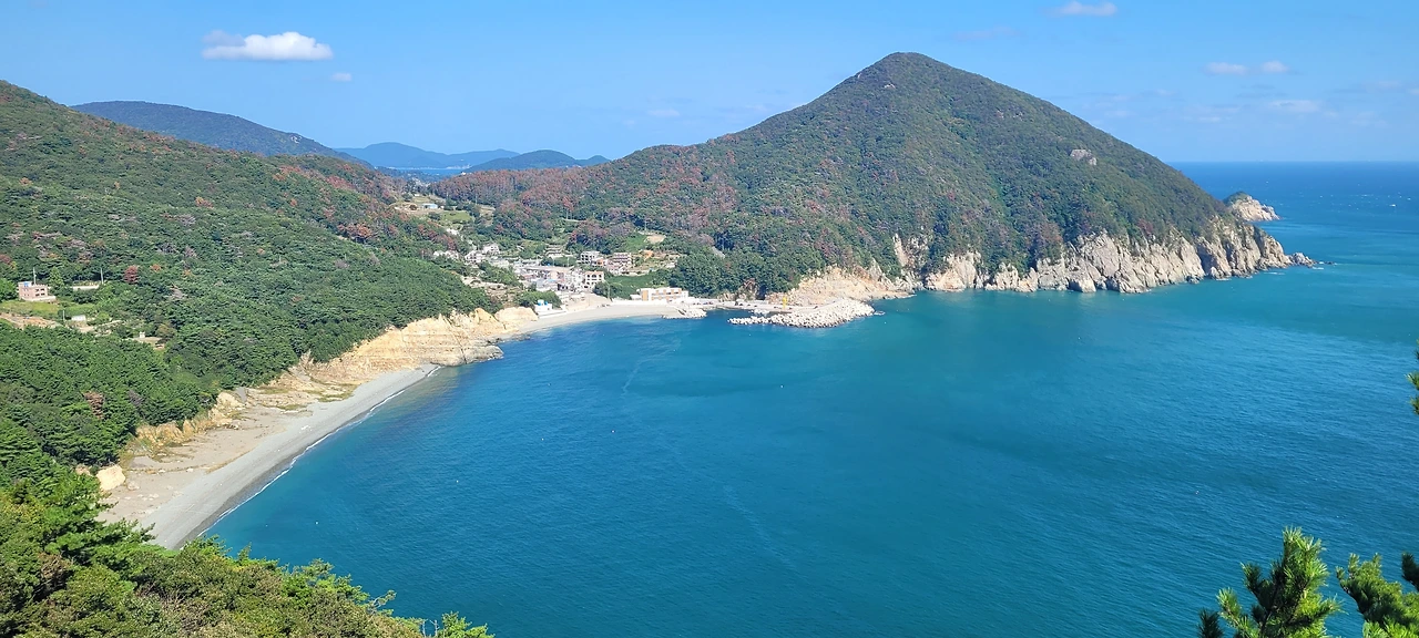 산을 병풍처럼 두르고 잔잔한 바다가 반짝이는