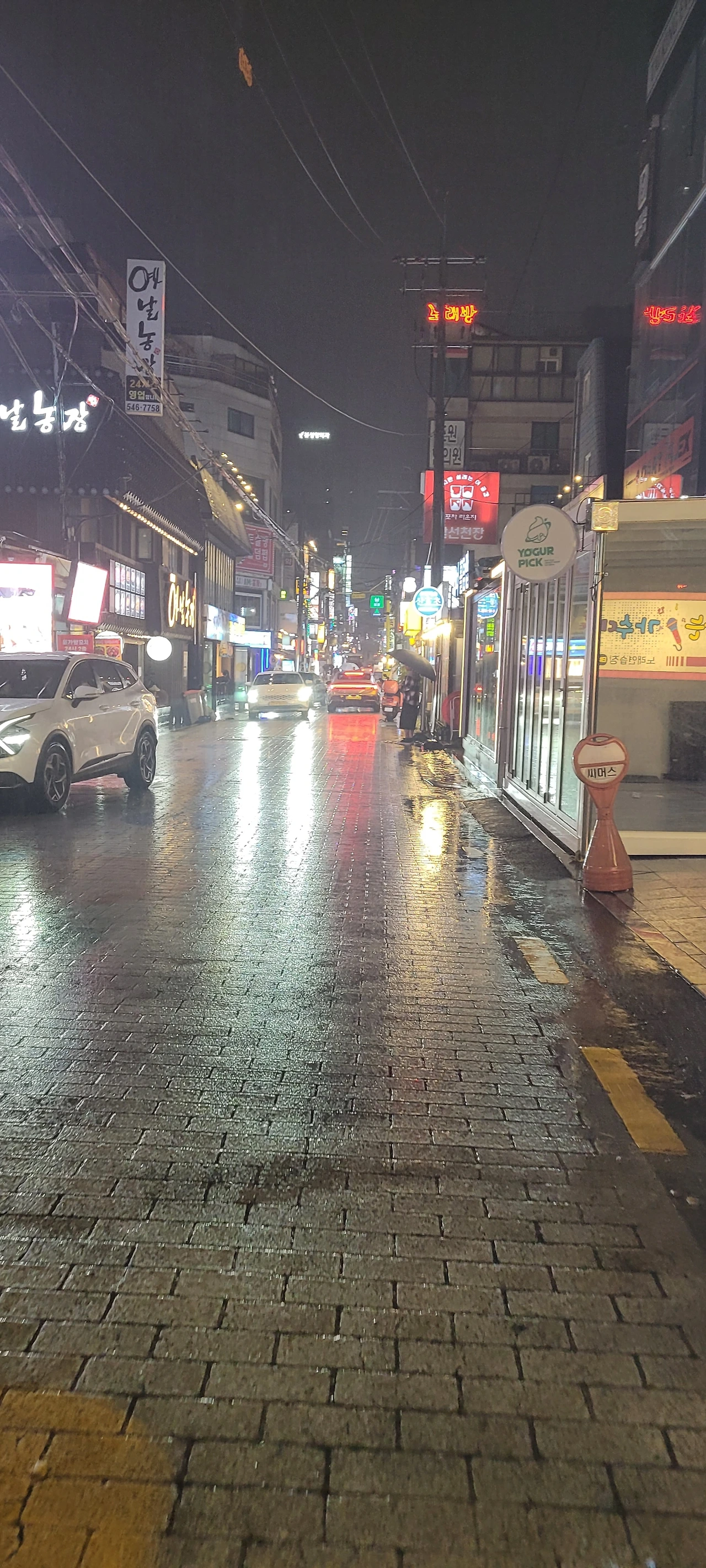 숙소로 돌아오는 길, 나는 서울의 빗길을 두 장의 사진으로 남겼다.