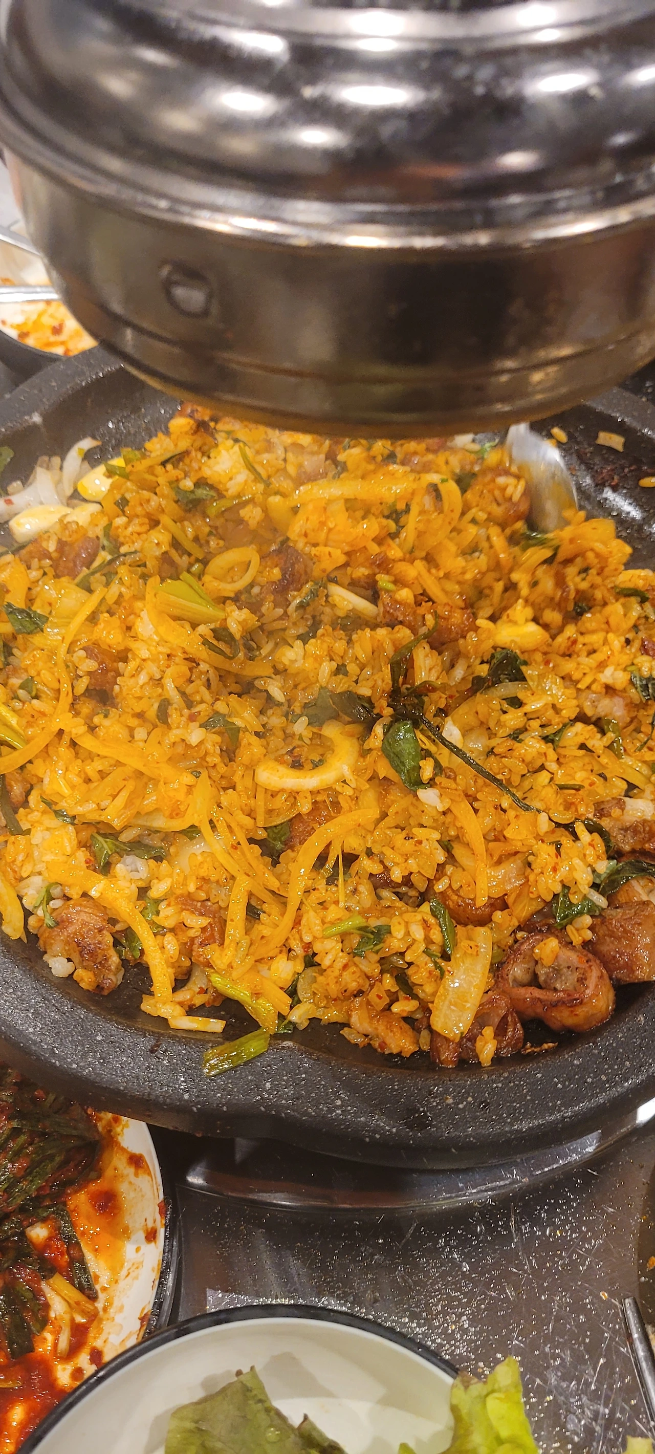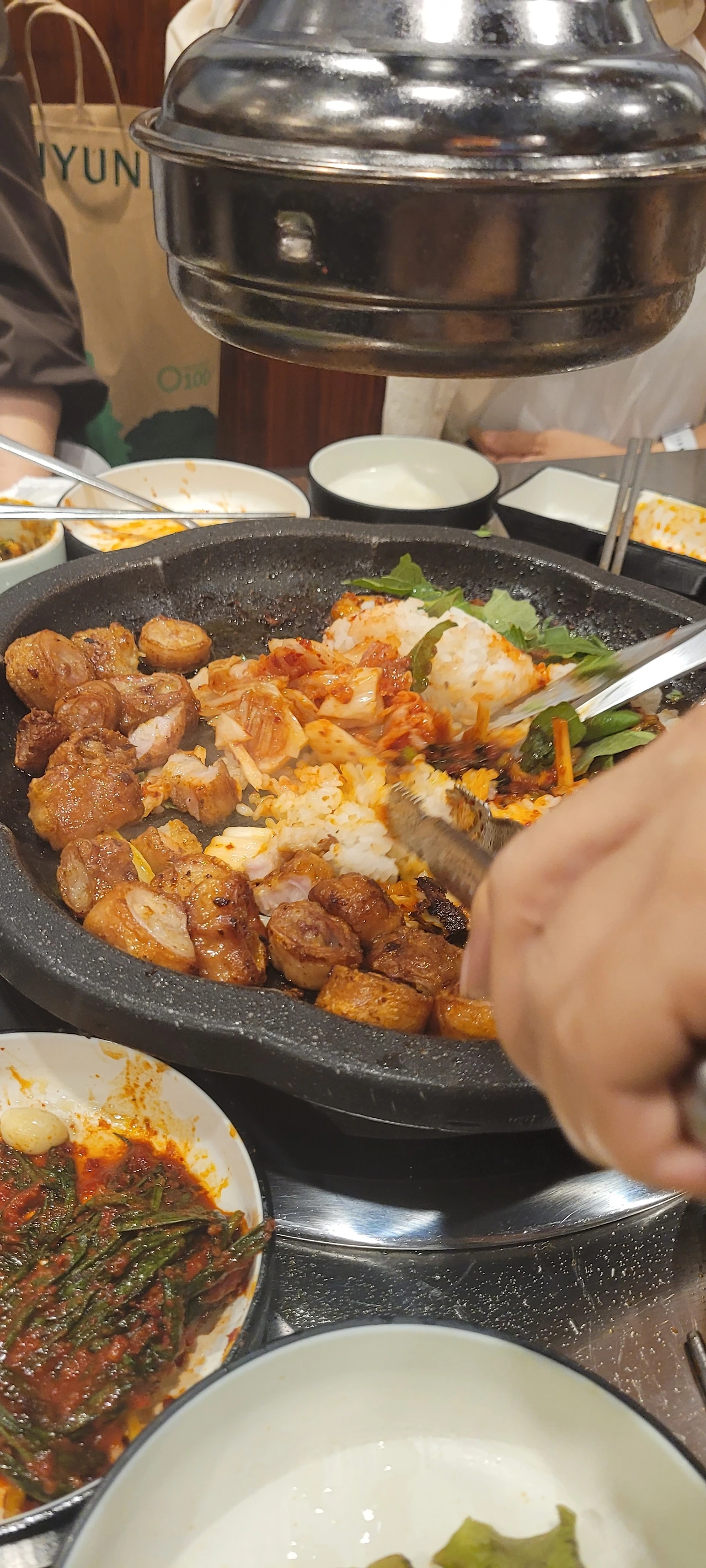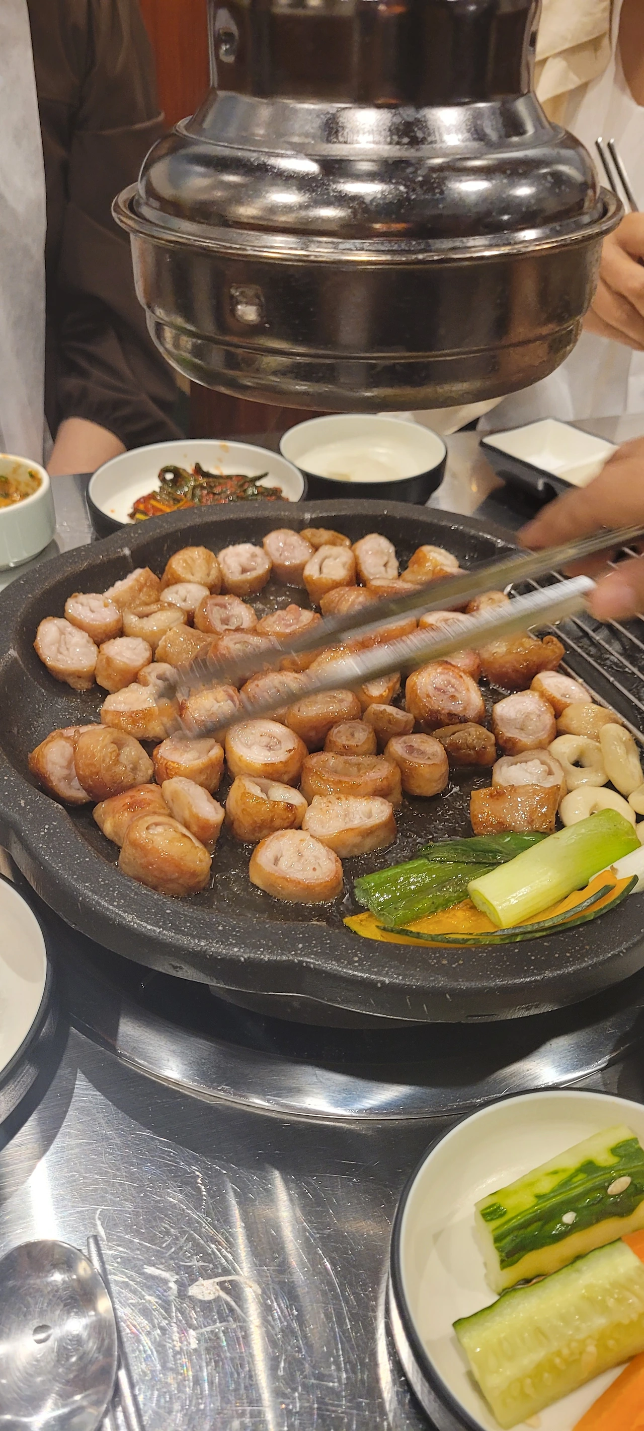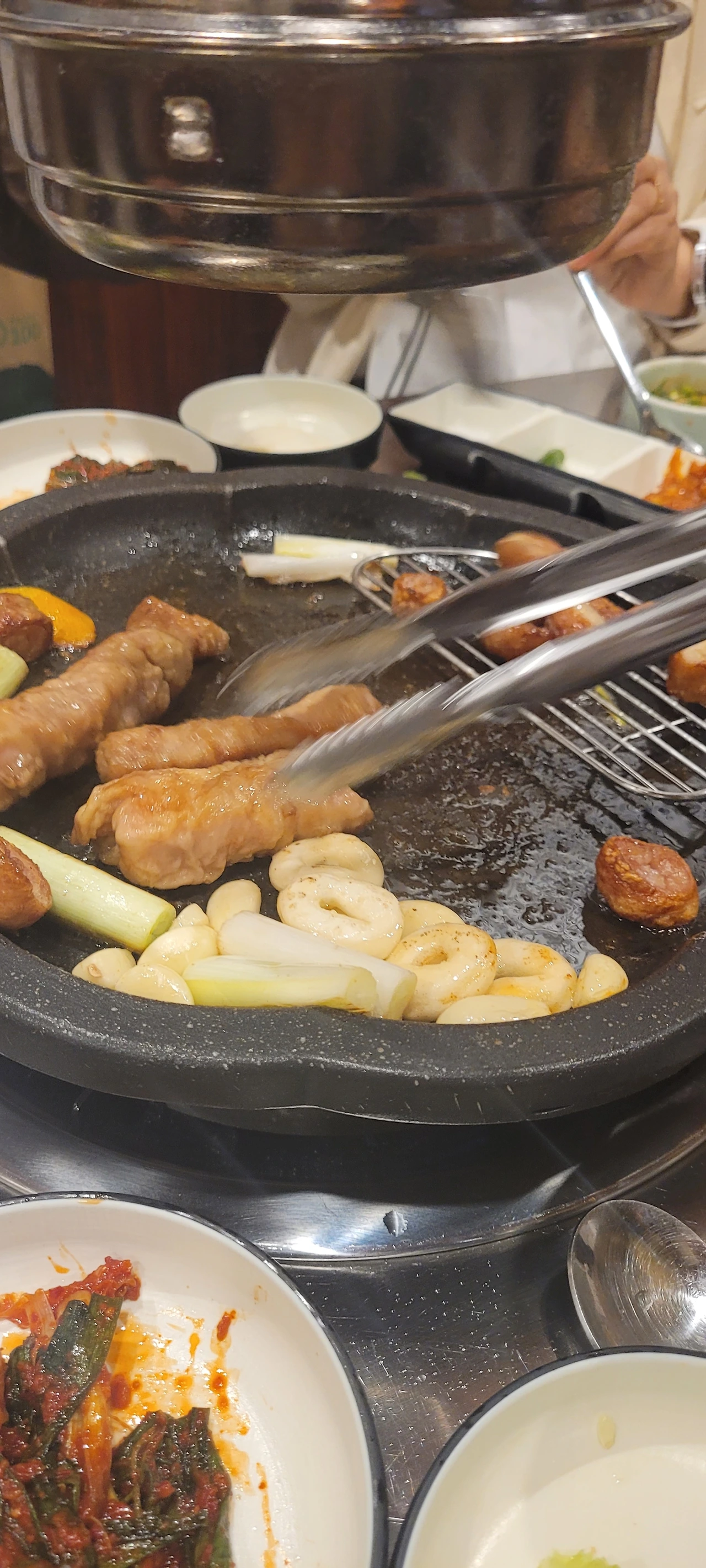 돌솥밥에 커피와 달달한 빵으로 채운 점심은 온데간데없고, 노릇하게 구워지는 막창과 된장찌개,