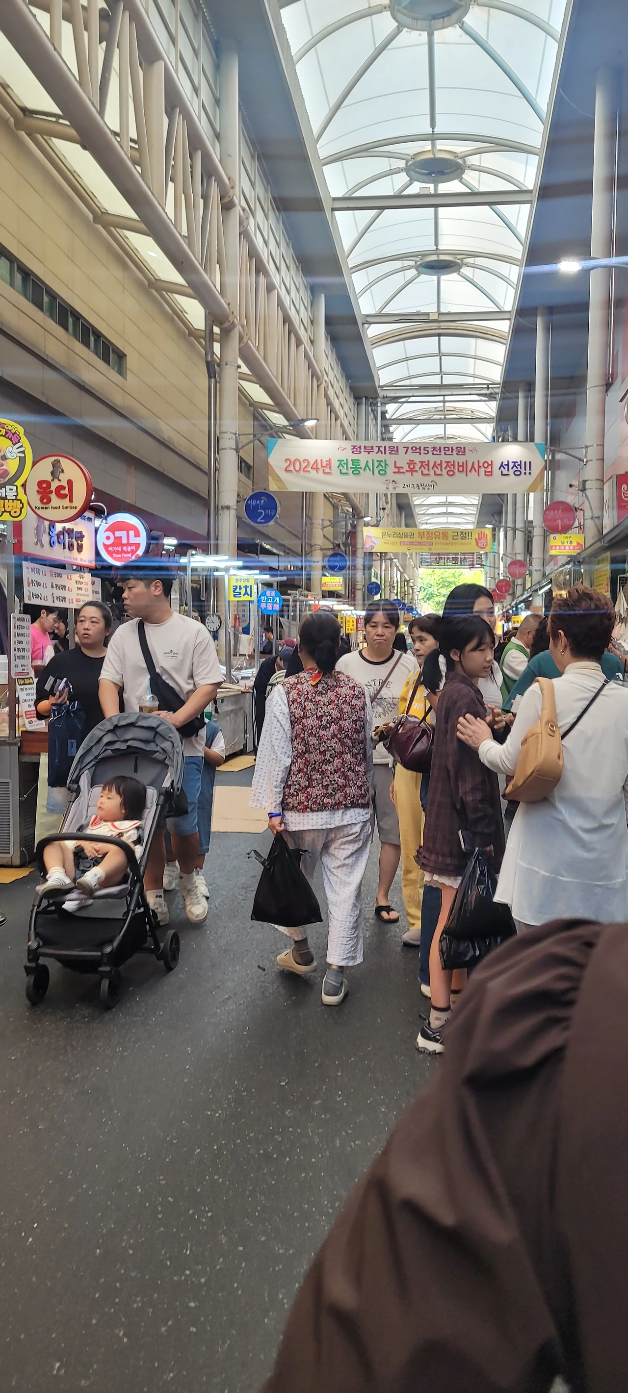 어묵 하나, 땅콩빵 시식, 생과일주스 한 잔으로 기력을 보충하며 우리는 시장 골목골목을 누비고 다녔다. 나는 지급받은 ‘공주 품위 유지비’로 아이들 잠옷을 한 벌씩 사고, 눈길이 자꾸 머물던 롱원피스 하나를 골랐다.