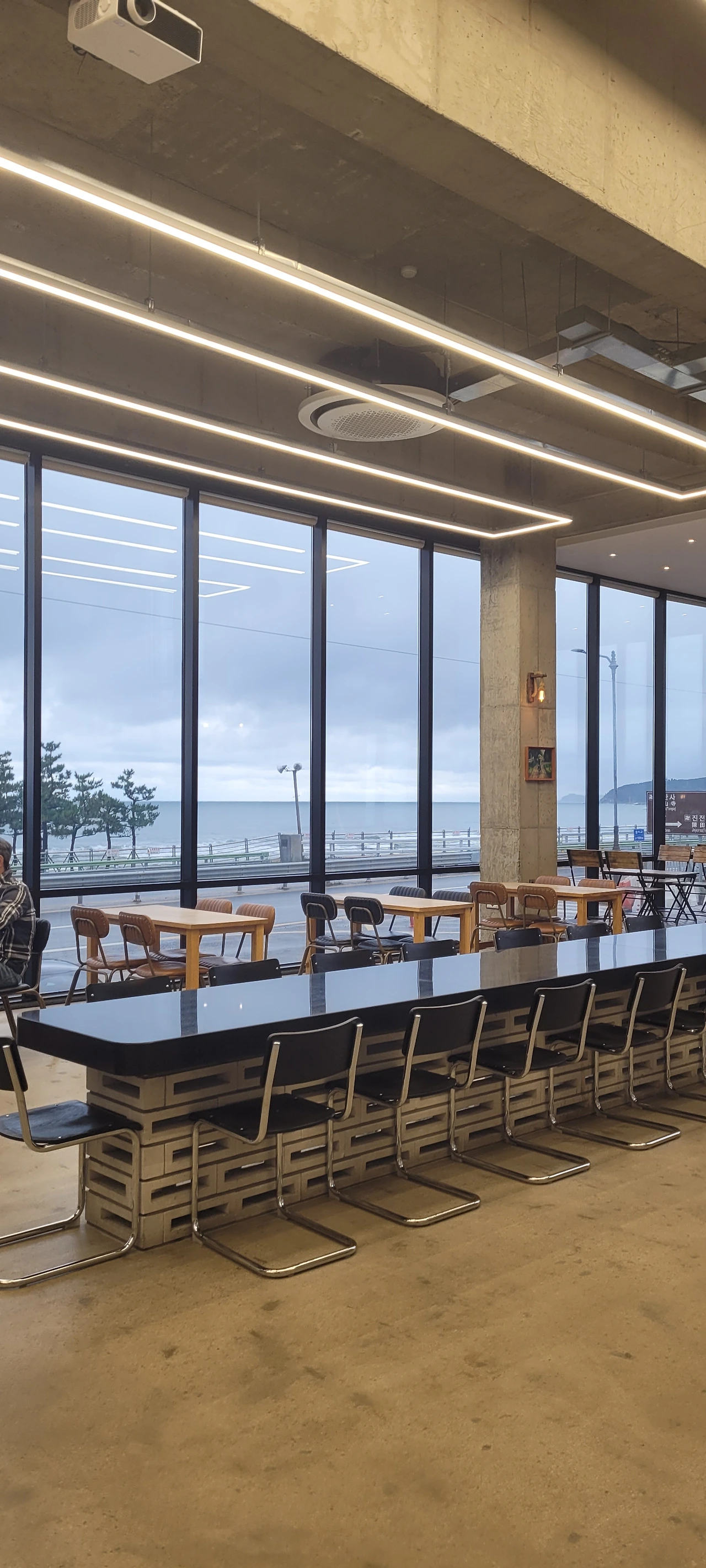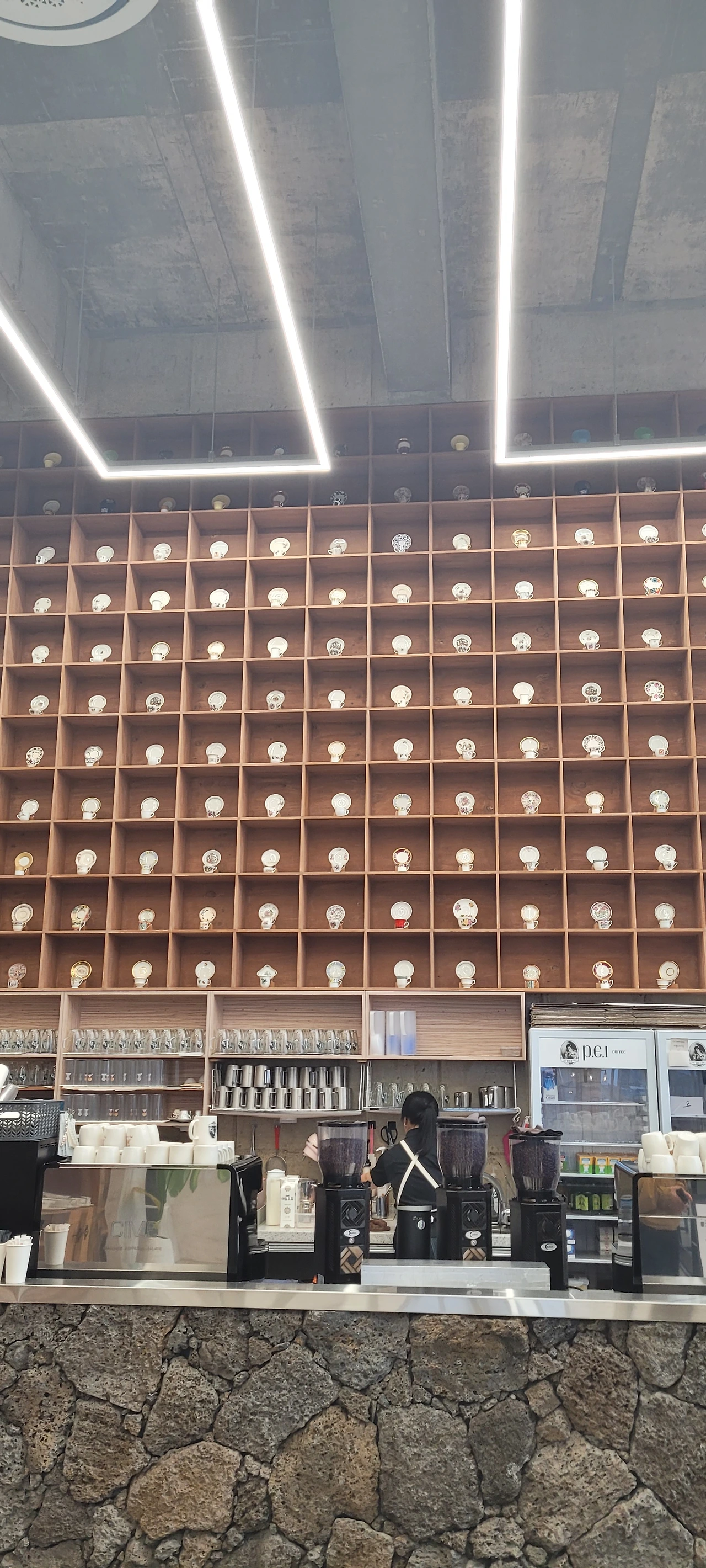 비가 잠시 그친 오후, 바다가 내려다보이는 커피숍 'PEI Coffee'에 들렀다.