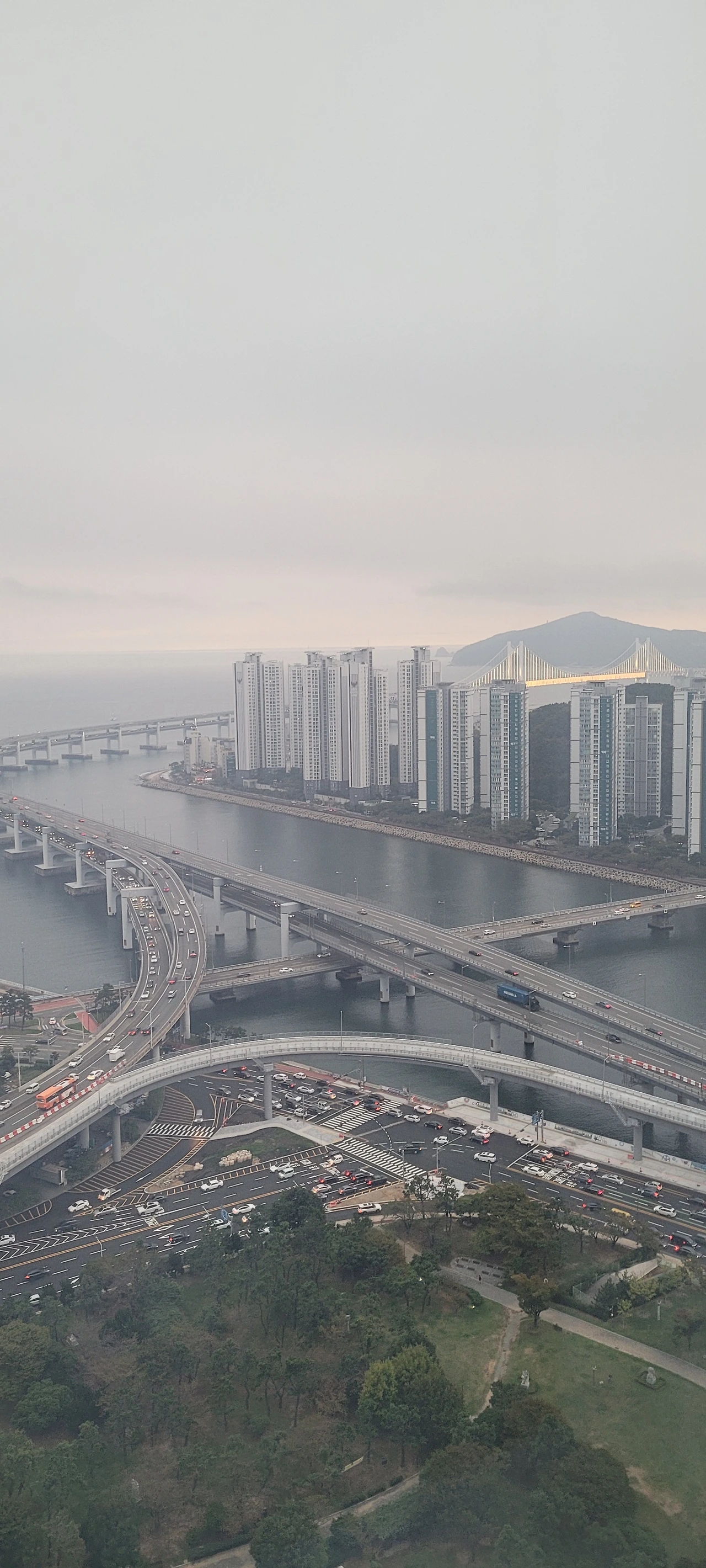 강과 바다가 만나는 장쾌한 풍경을 따라, 부촌으로 급부상한 도시답게 쭉쭉 솟아오른 고층 빌딩들의 불빛, 도로를 달리는 자동차들의 행렬, 그리고 멀리 광안대교까지 가늠되는 야경이 한눈에 들어왔다.