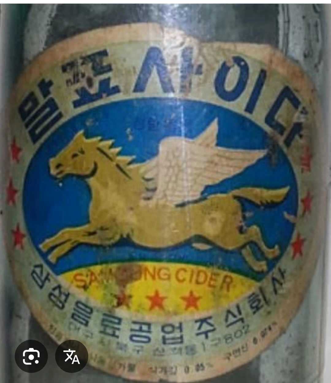 날개 단 말이 그려진 사이다 병.