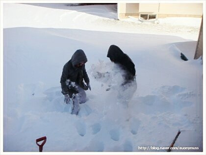 앞이 보이지도 않을 만큼 몰아치는 눈태풍이 오면 세상은 순식간에 새하얗게 뒤덮이곤 했다.