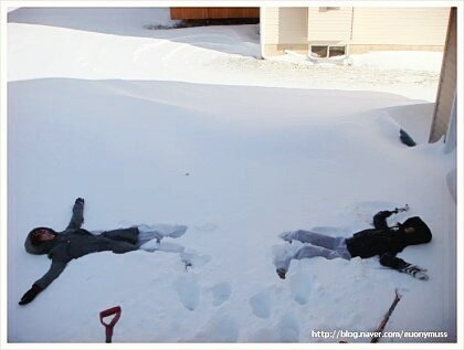 눈 태풍이 지나간 뒤에 세상엔 두 가지 색만 남았다. 하얀 눈, 새파란 하늘.