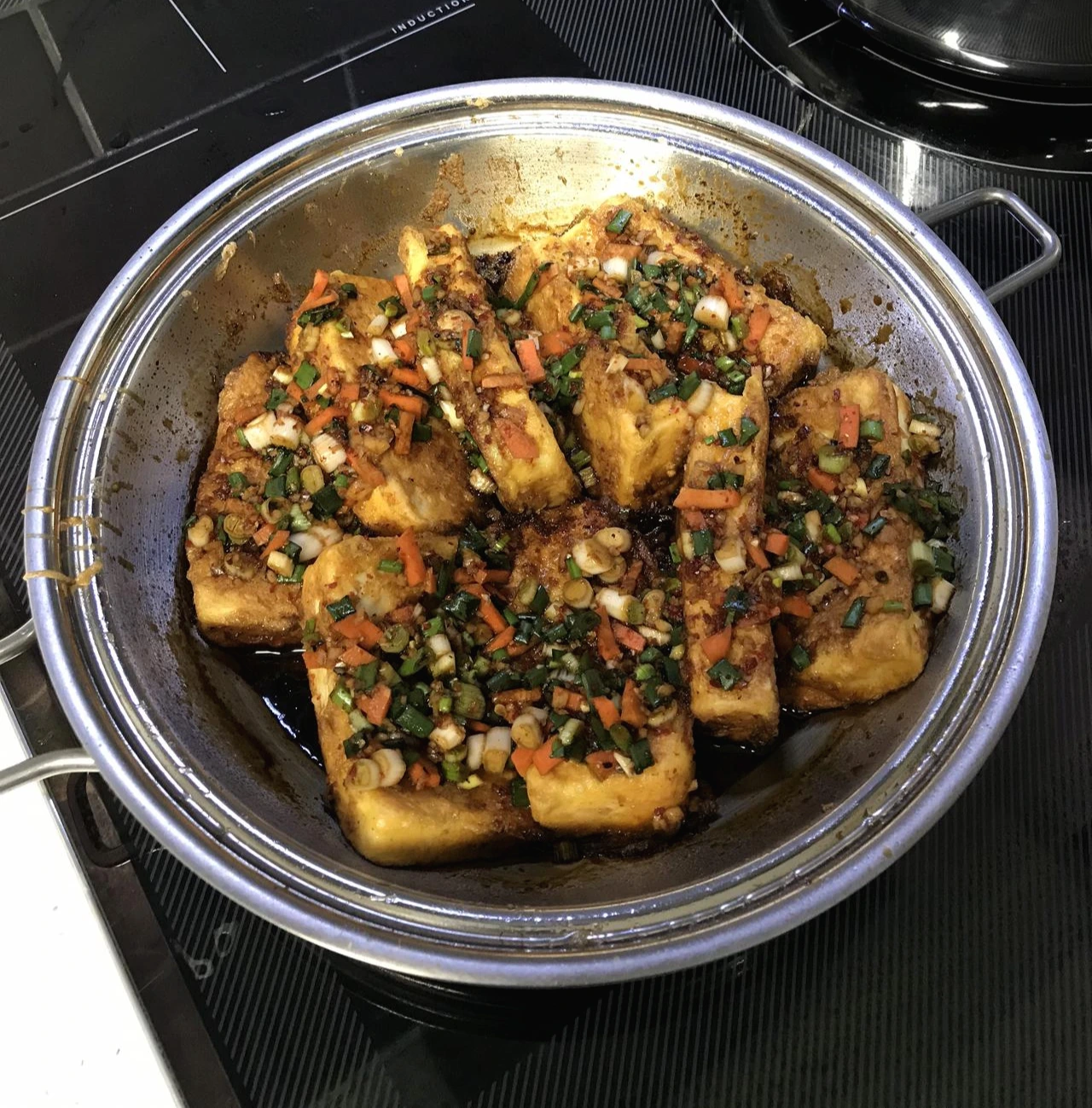 코팅 팬은 우리가 탈까 봐 자꾸 뒤집어 주는 버릇이 있다. 하지만. 스텐 팬은 그럴 필요 없이 한쪽면이 70%가량 익었다 싶을 때 뒤집어서 나머지 한쪽면도 익혀주면 된다.