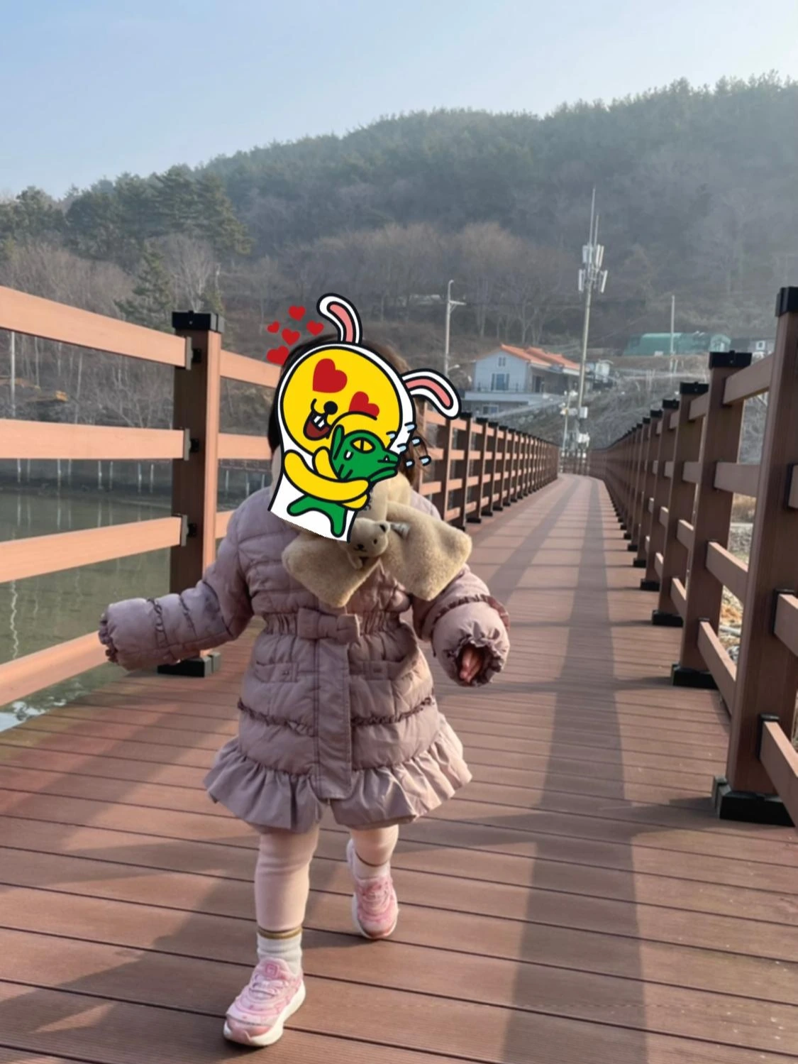 오늘 우리가 둘러볼 장소는 총 세 곳이란다. 해지개 다리, 송학리 고분, 카페 OOO. 오전에 아침식사를 하고 숙소 근처에 있는 해지개 다리에 갔어. 이 날은 미세먼지 하나 없는 아주 쾌청한 날이었지. 하늘은 파란색 물감을 풀어놓은 듯한 색감을 자랑했고 구름 한 점 없었지. 단, 공기가 차서 너희 둘은 춥다고 했었단다. 하지만 해지개 다리를 가기 위해 해안에 설치되어 있는 산책로를 뛰다 보니 금세 덥다고 했지. 역시, 너희들의 체력을 따라가기에는 아빠가 역부족이었어…