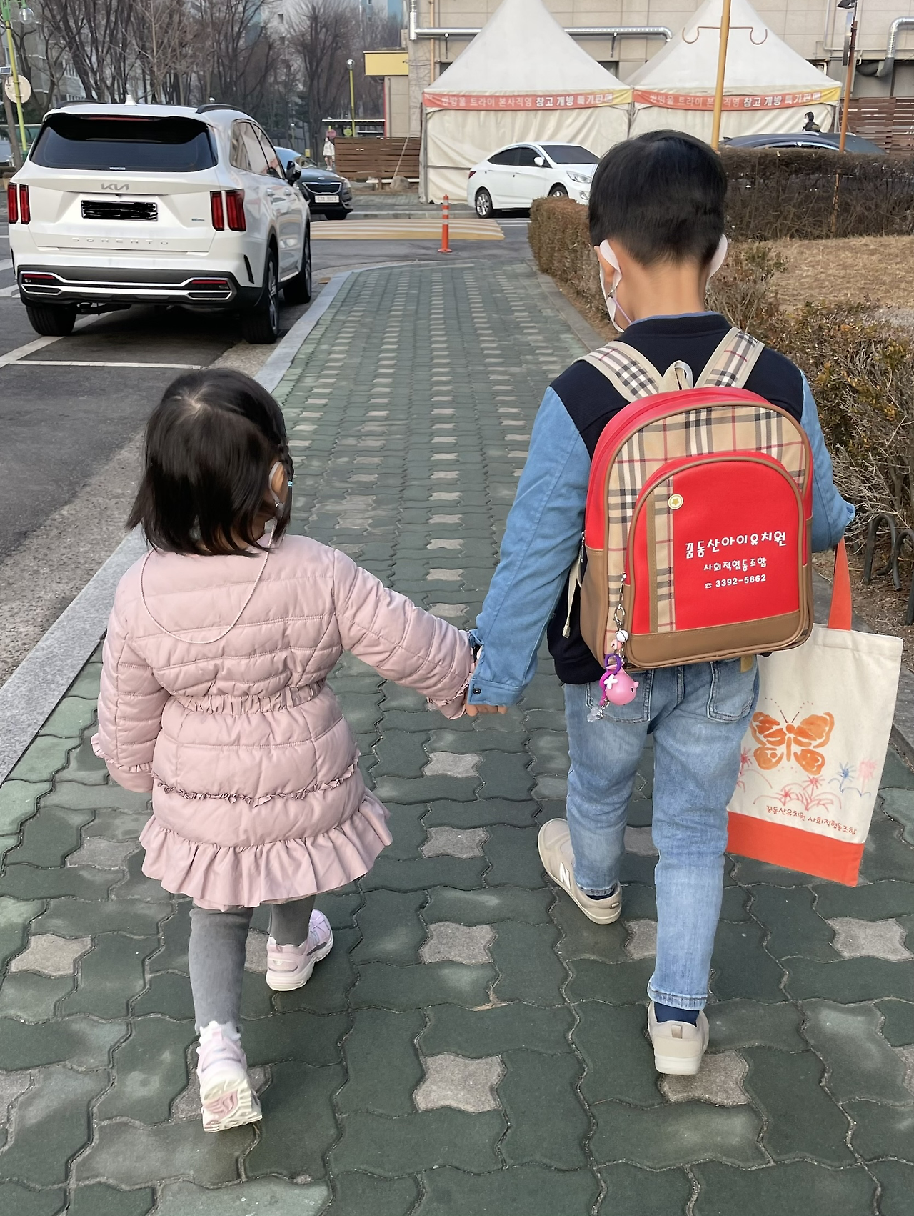 오늘은 등원할 때 아주 멋진 모습을 봤다. 아직 듬직한 오빠와 그를 의지하는 여동생의 모습이다. 오늘도 위에서 언급한 것과 같은 전쟁 같은 등원준비를 끝내고 집을 나섰다. 어린이집을 졸업하고 유치원에 처음 가는 봄봄이는 잔뜩 긴장한 모습을 보였다. 그런 동생의 모습을 한참 지켜보던 도담이. 봄봄이 옆에서 같이 걸어가던 도담이가 갑자기 봄봄이의 손을 잡고 발걸음의 속도를 맞춰준다. 등원 길에 봄봄이가 “아빠. 추워요.”라고 말하자 도담이는 동생의 손을 더욱 꼭 잡아주며 “빨리 가자 봄봄아!”라고 말하며 걸음 속도를 올렸다.