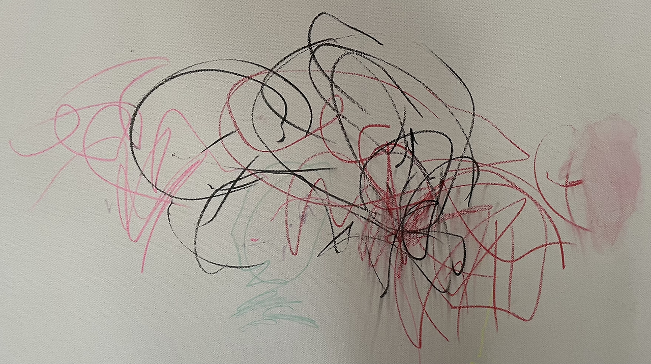 위 그림은 우리 집 안방 벽에 걸려있는 ‘어떤 화가’의 작품이다. 난해해 보이기도 하고 역동성이 느껴지기도 하다. 밤하늘에 수놓은 불꽃같기도 하고 고뇌에 빠진 한 사람의 마음속을 들여다보는 것 같은 느낌도 든다. 어떤 관점으로 그림을 바라보느냐에 따라 다양한 해석이 가능한 작품이다. 작품 설명은 여기까지 하고 이제 그 화가를 소개해 보려고 한다. 그 작가는 바로 봄봄(둘째)이다. 작품이 전시되어 있는 장소는 안방의 벽지다. 벽! 지! 다시 보고, 또 봐도 정말 어이가 없다.