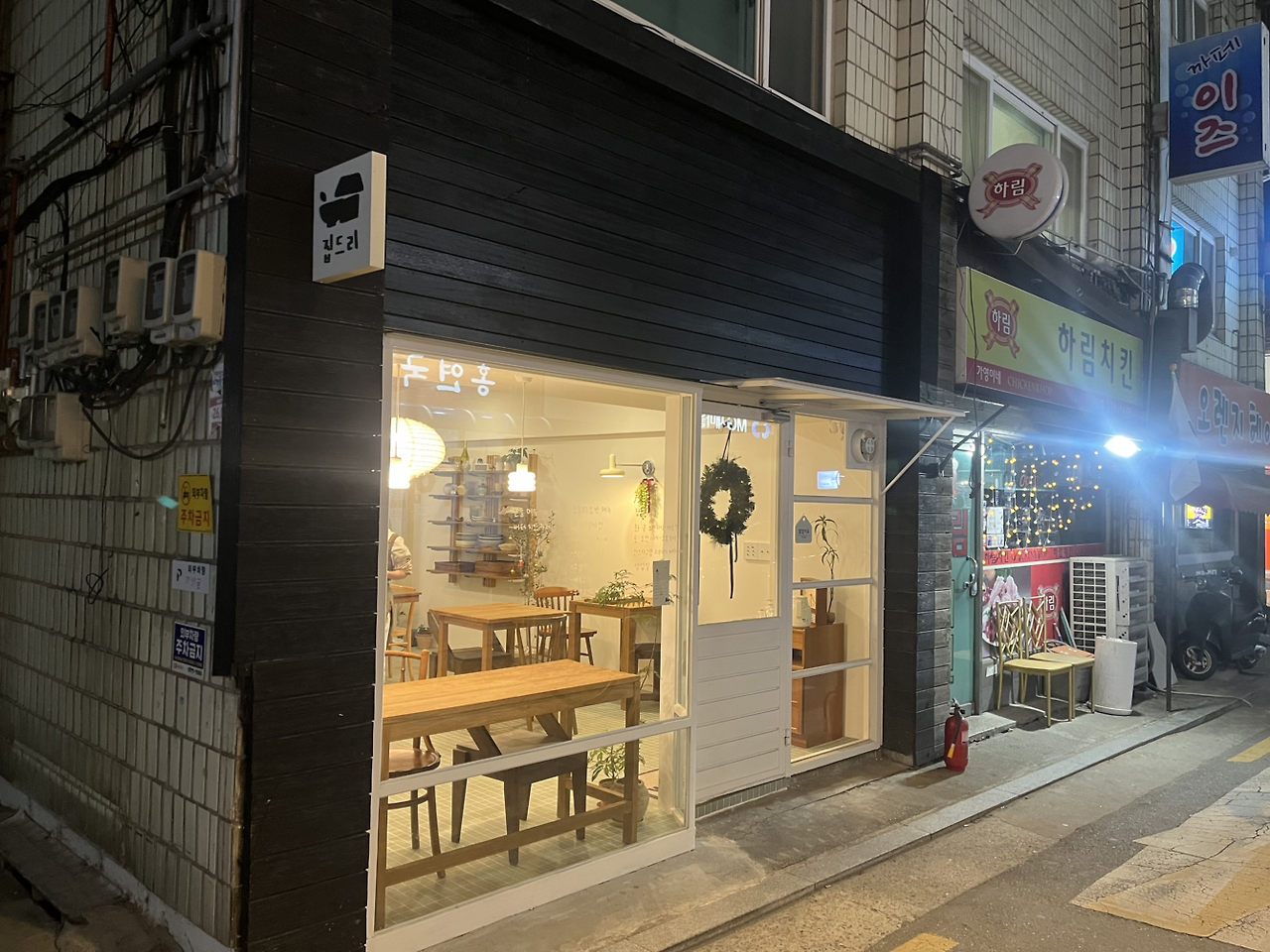 들어가서 메뉴를 보는데 맞은 편에 있는 깔끔하고 감성 인테리어로 꾸며진 식당에 눈이 자꾸 갔다.