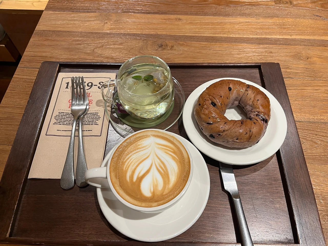 우린 그 카페에 들어가서 커피와 페퍼민트, 베이글빵 하나를 주문해서 2층 테이블에 자리 잡고 대화를 시작했다.