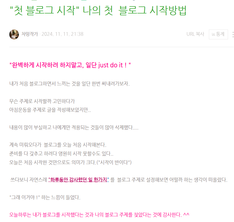처음 블로그 시작했을 땐 주제를 정하지도 못했고 일단 아무 글자나 써보자 하며 시작했다.