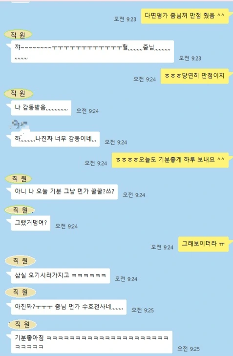 그 직원은 내가 다면평가 만점을 줬다는 얘길 듣고 감동해하며 기대이상으로 고마워했다.