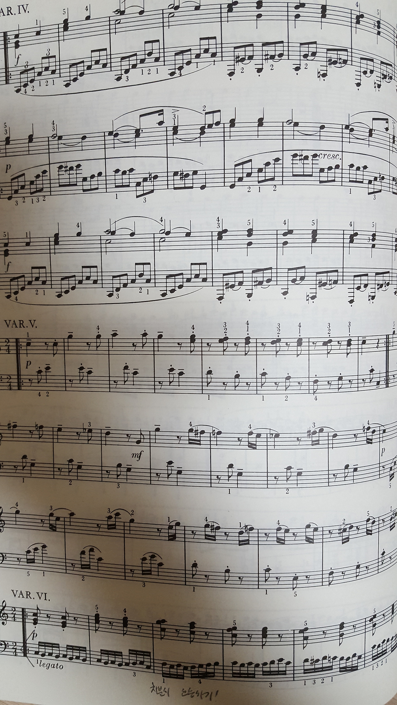 6번 변주는 왼손의 16분 음표들이 쉬지 않고 움직여야 해서 자칫하면 손가락이 꼬꾸라질 수 있다.