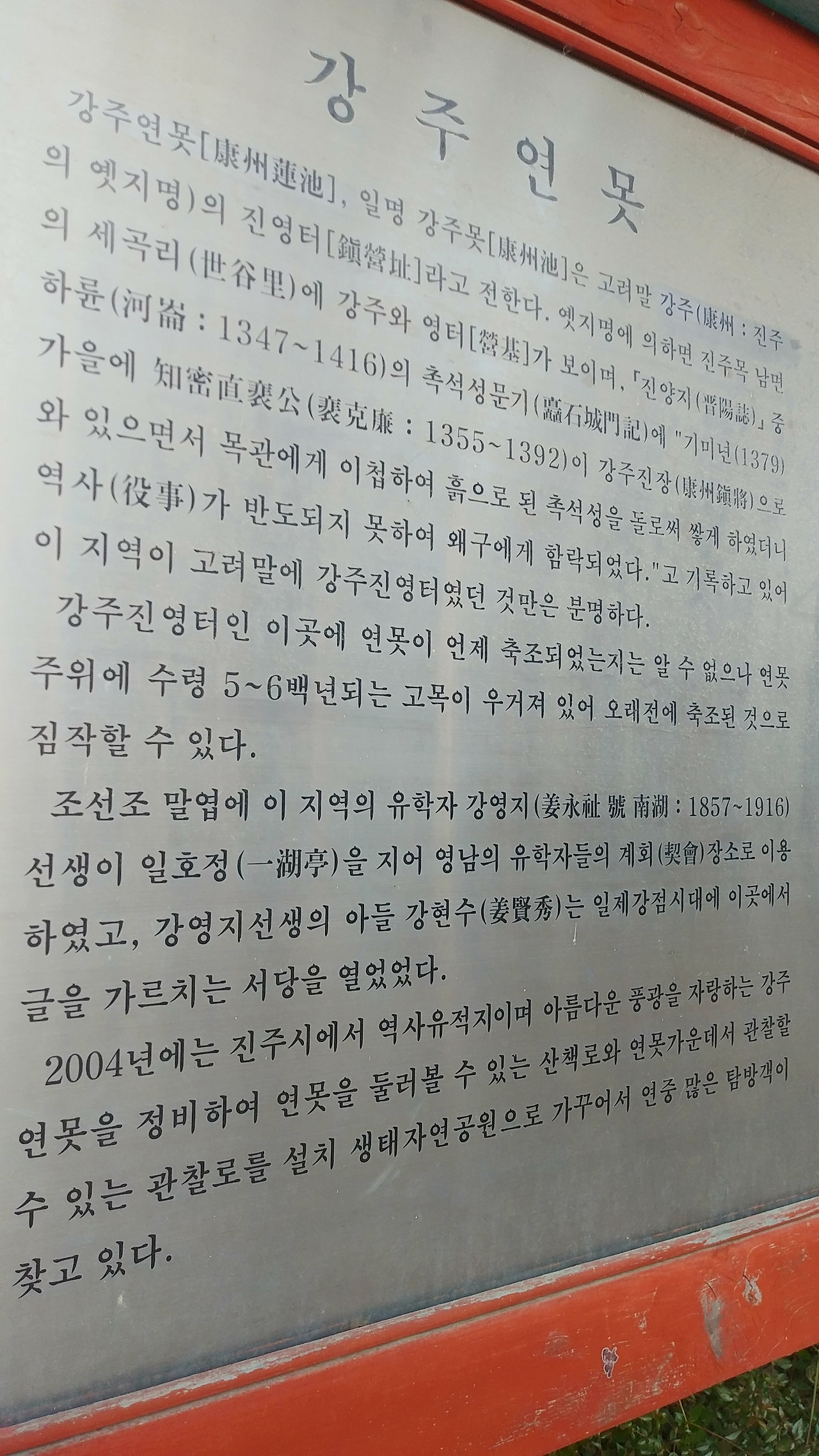 들어가는 입구 정문이라고 해야 하나요. 안내판 앞입니다.