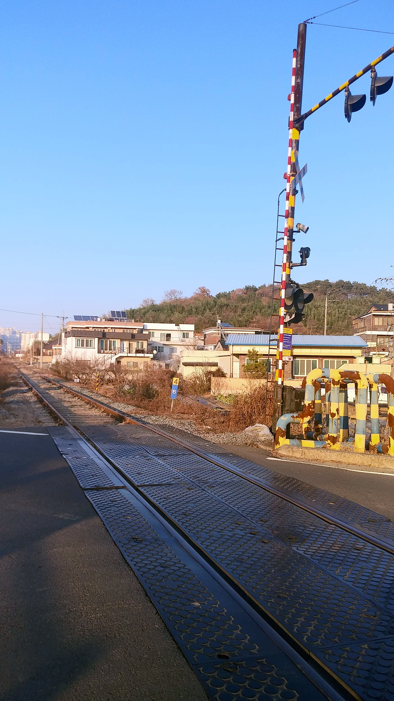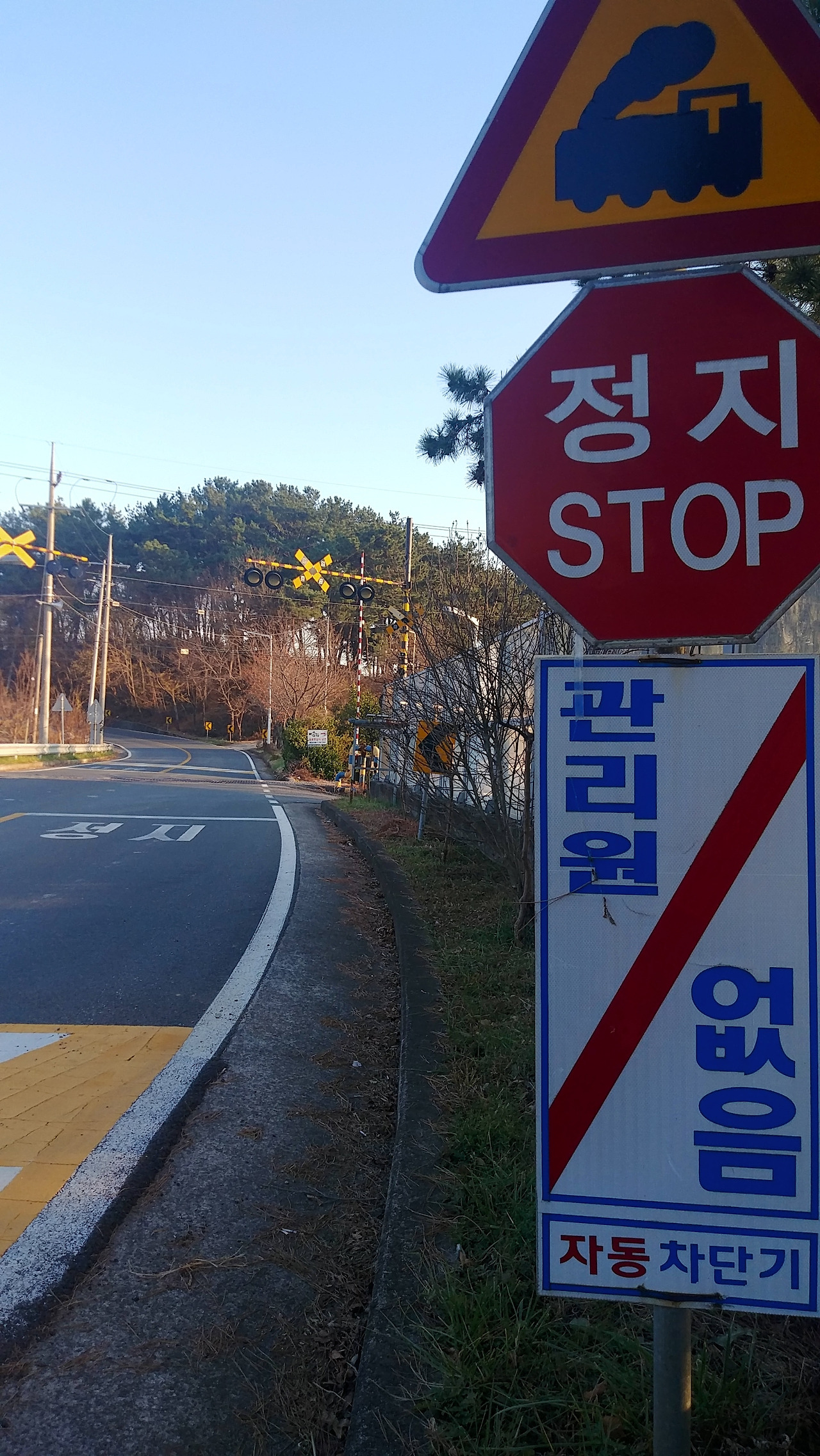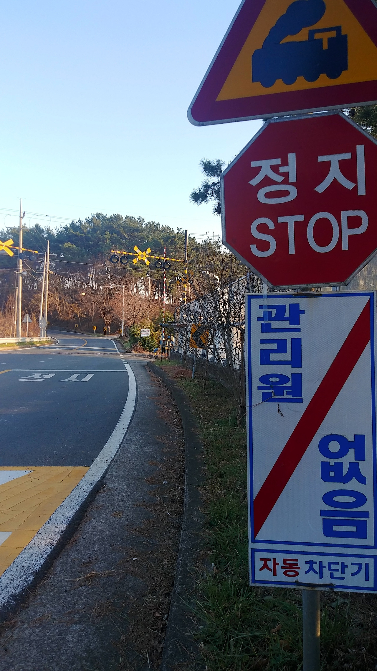 차단기, 신호등 알록달록 멈춤 안내판이 참 이쁩니다.