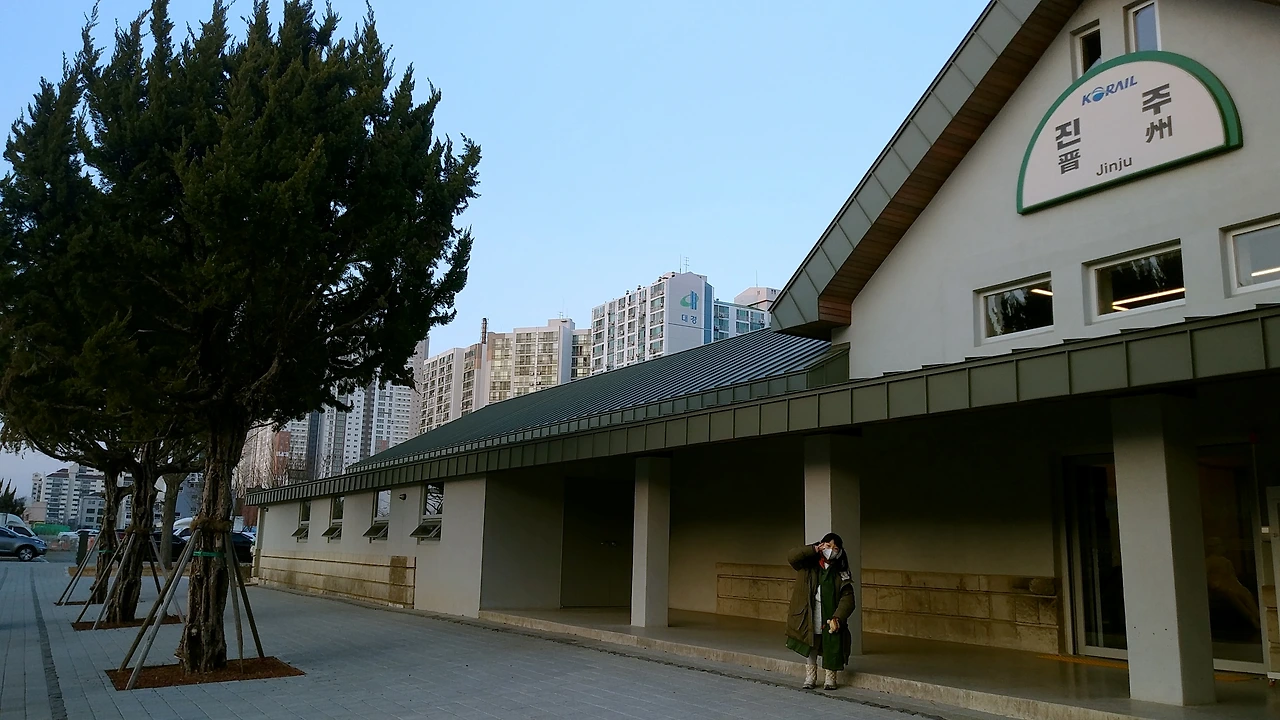 기차역 들어가는 정문 앞에서도 찍어야 하는데 이곳은 기차 타는 곳으로 나오는 문. 진주역