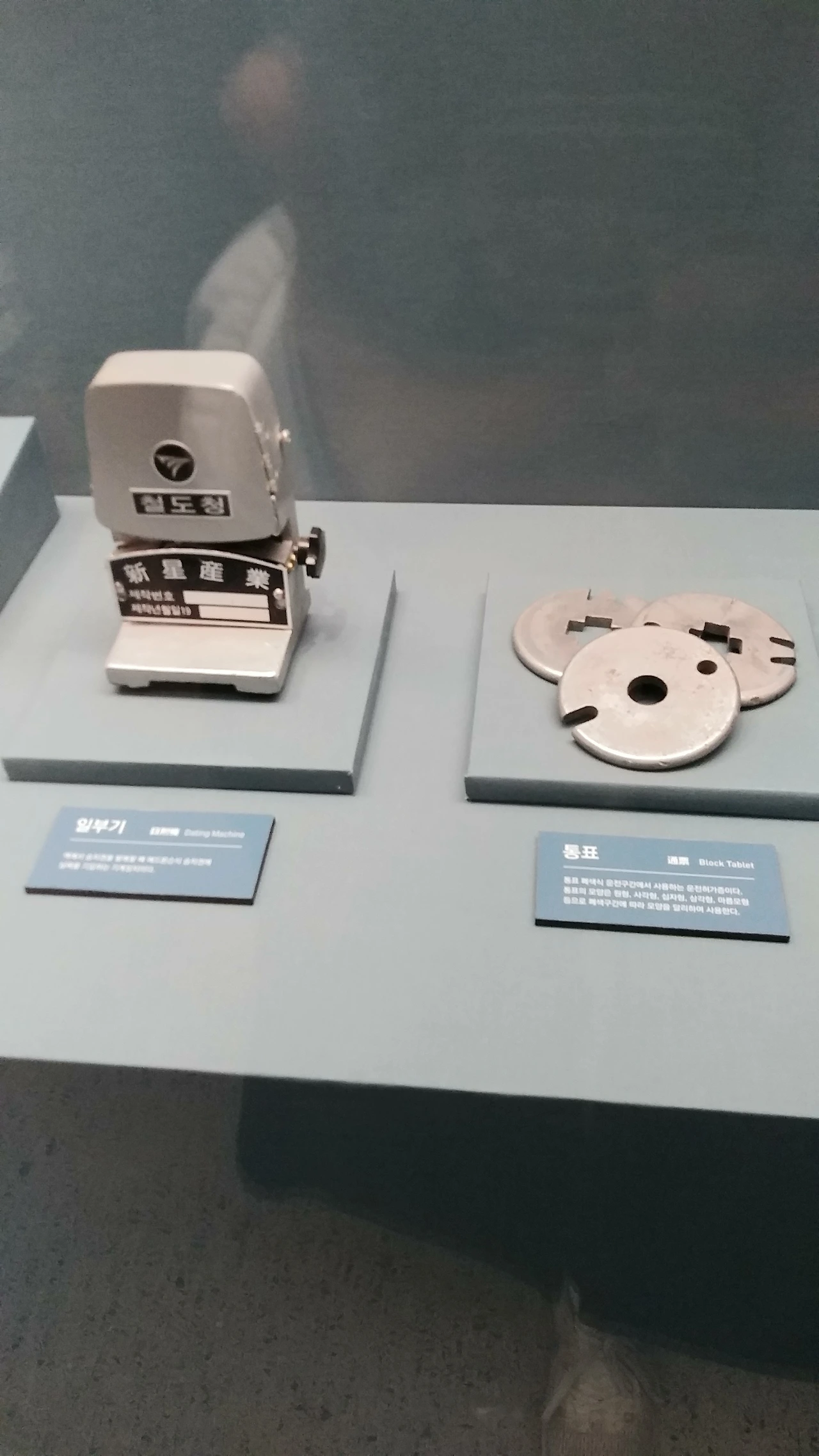 내부는 유아들이 놀기에 좋아요. 기차역 그림엽서를 무료로 주는데요. 4개 있는 책상에 따로 앉아 준비되어 있는 색연필로 그림도 그리고요. 들어가면 역무원을 뽑기 위해 치렀던 시험과목을 게임식으로 맛볼 수 있습니다. 동전 옆구리만 보고 얼마인지 맞히기, 몇 명이 탑승하는지 계수하기, 실 꿰기(뭣에 쓰지?), 모양 맞추기 같은 소근육과 눈 근육을 이용하여 업무에 적합한지 테스트를 하는 겁니다. 역무원이 입었던 옷도 있고요. 신호등이 아니라 <전호등>을 이용해 신호를 주고받고, 통표를 교환하는 그런 역사요.