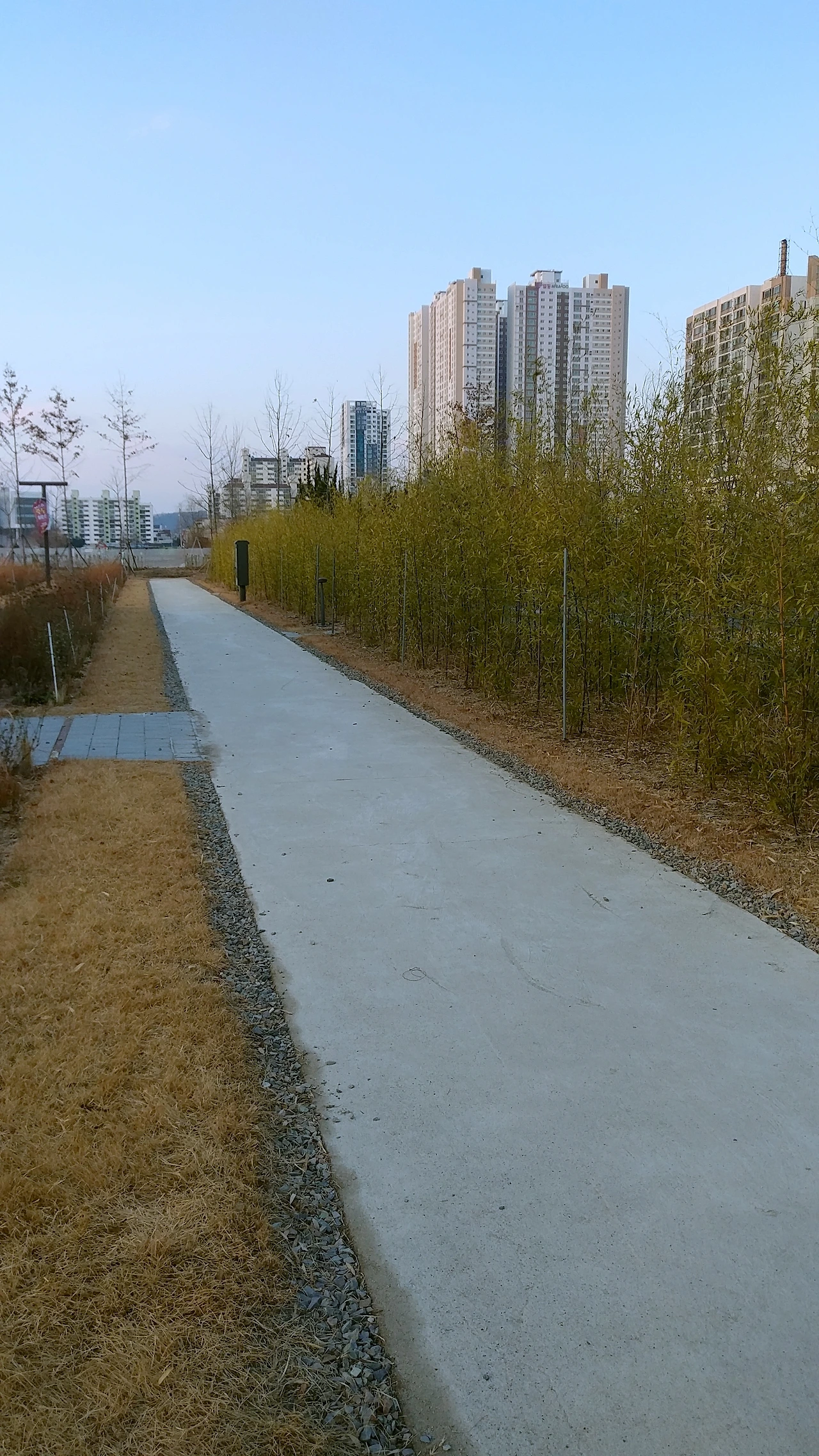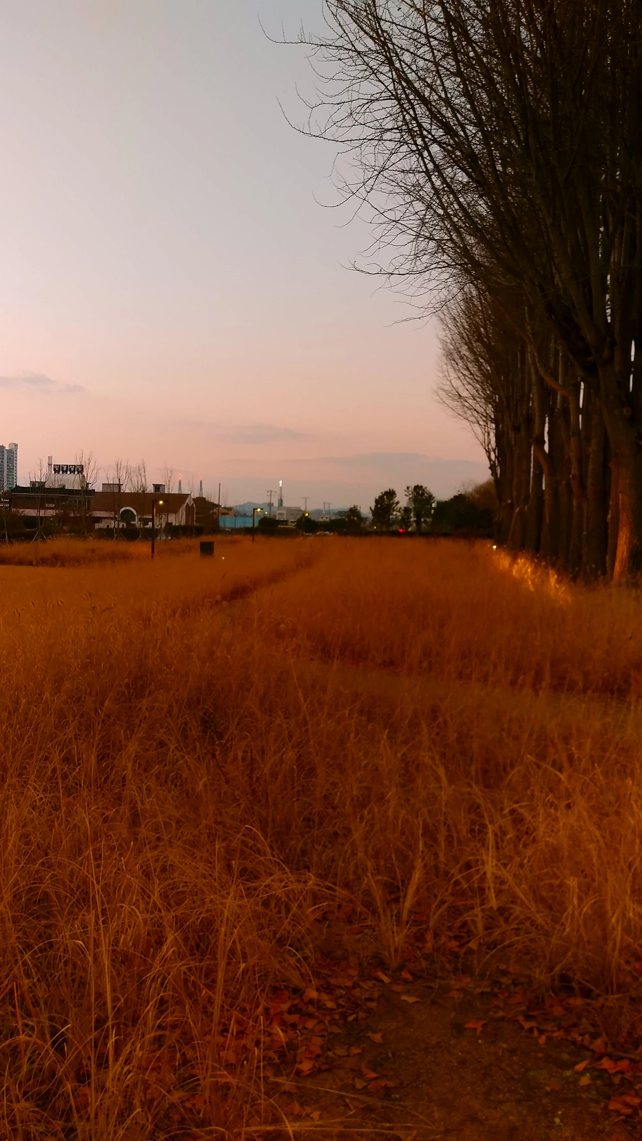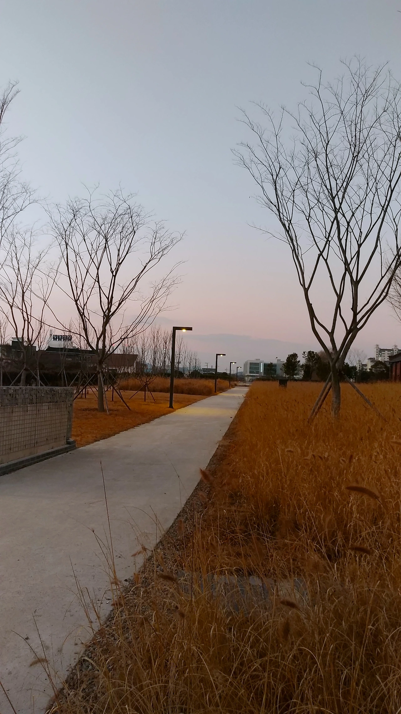 노을을 보며. 끝이 보이지 않는 철도문화공원. 길 끝나는 곳에 전차대니 맹꽁이 보호를 위한 생태공원도 함께 있습니다. 사진은 없습니다.