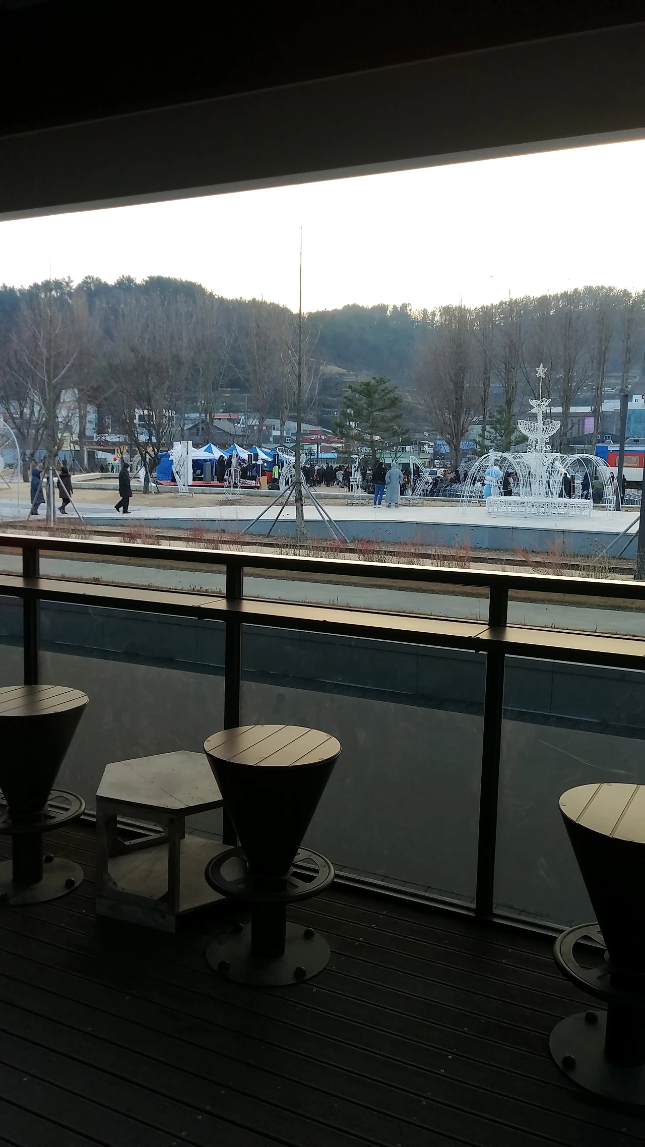 차와 뭐..라고 적혀있어 '들어가면 따뜻하겠다' 하고 들어왔더니 창이 뚤려있습니다. 외부 풍경이 액자속에 쏘옥 담겨 있네요. 이뻤어...