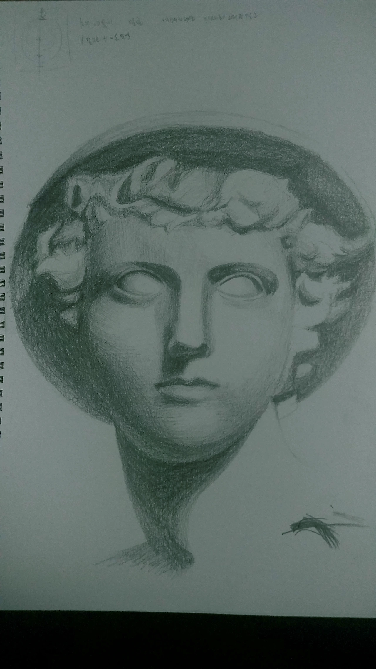주변을 둘러본다. 정지된 시간에서 돌아온 나와 달리 수강생들은 차근차근 시간과 함께 흐르고 있었구나. 지우개로 지우는 사람, 거의 다 그렸는지 스케치북을 들고 먼 눈을 하는 사람, 크로키를 하듯 거칠게 쓱쓱 해치우는 사람, 섬세하게 스케치북을 연필로 파는 사람, 스케치북 속으로 들어가려는지 키스를 하려는지 고개를 갸웃해 가며 각도를 재는 사람 등등. 다양하게도 차근차근 자기식대로 가고 있다.
