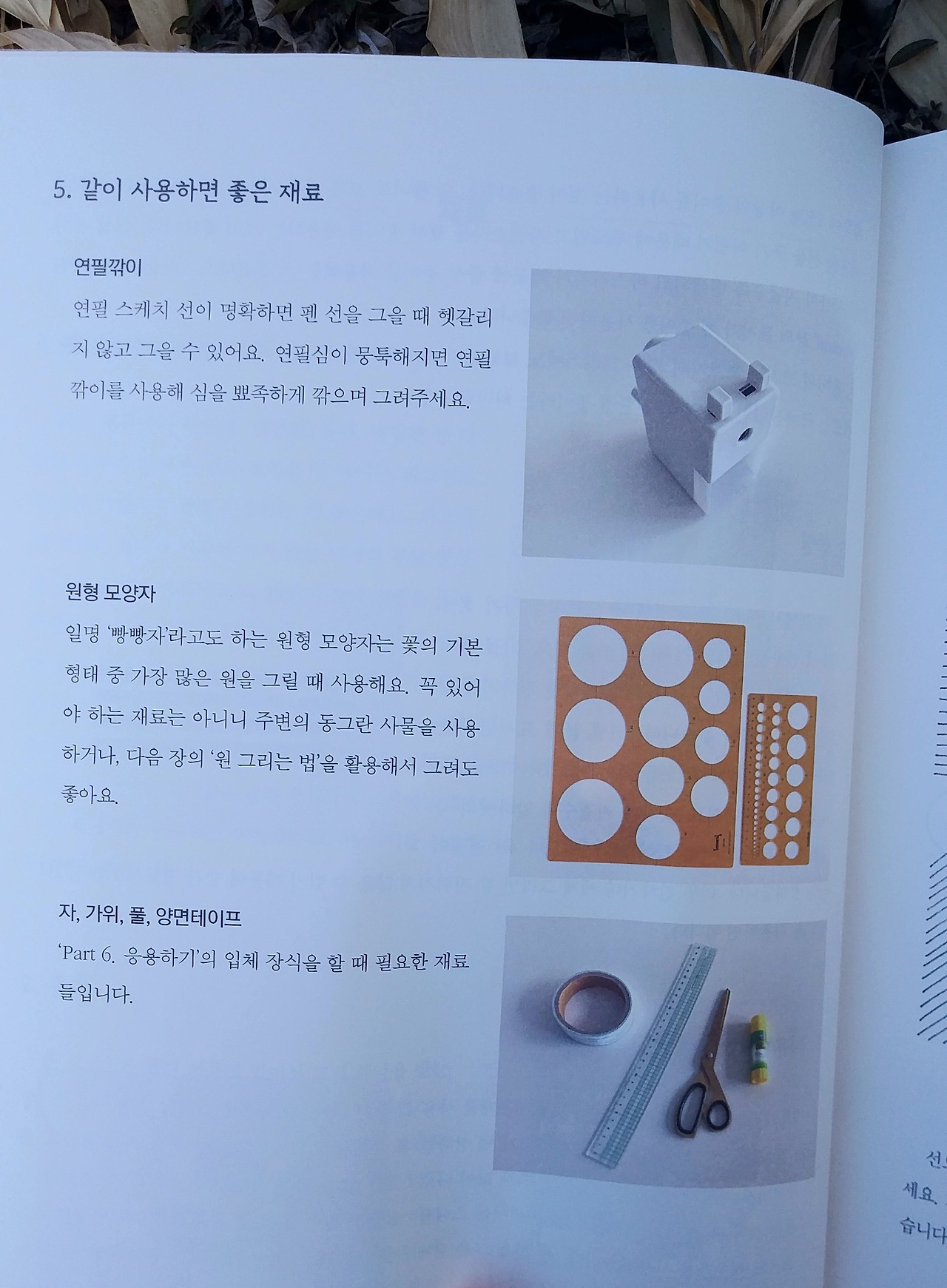 공책이 자꾸 넘어가려고 해서 꽃반지로 고정^^