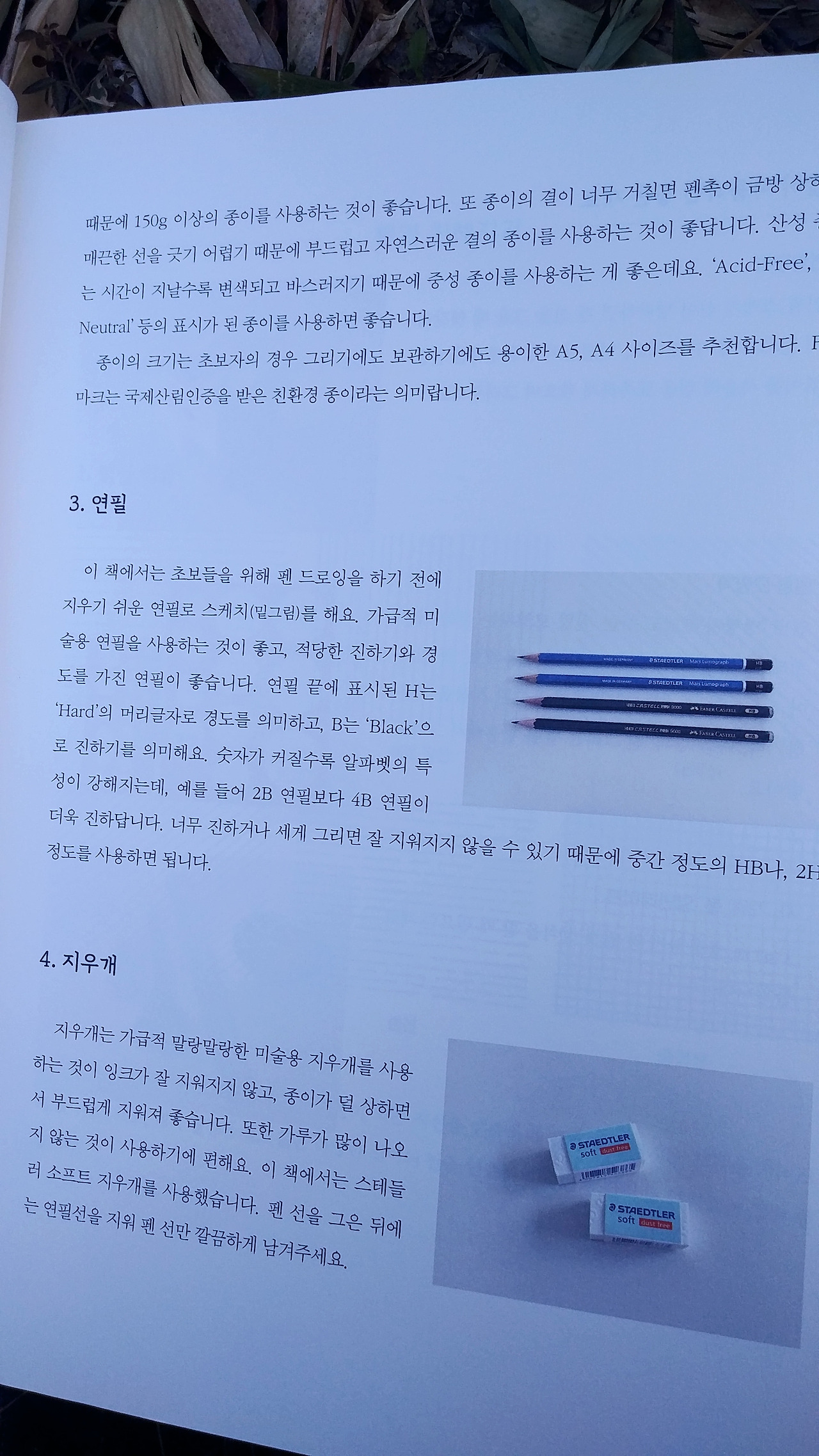 손 풀기로 선을 그렸으니, 다음에는 간단한 펜선과 더 간단한 수채 작업을 도와주는 책으로 해 보겠습니다.(이미 하고 있지만요) 수채를 위한 손 풀기가 되겠습니다. 그러고 나면 본격적인 스케치를 도와줄 드로잉 책을 할까 하는데 쌓아둔 책이 많아 바뀔 수도 있습니다. 단계별로 가려는 마음이라 더 알맞다 싶은 책으로 해 볼게요.