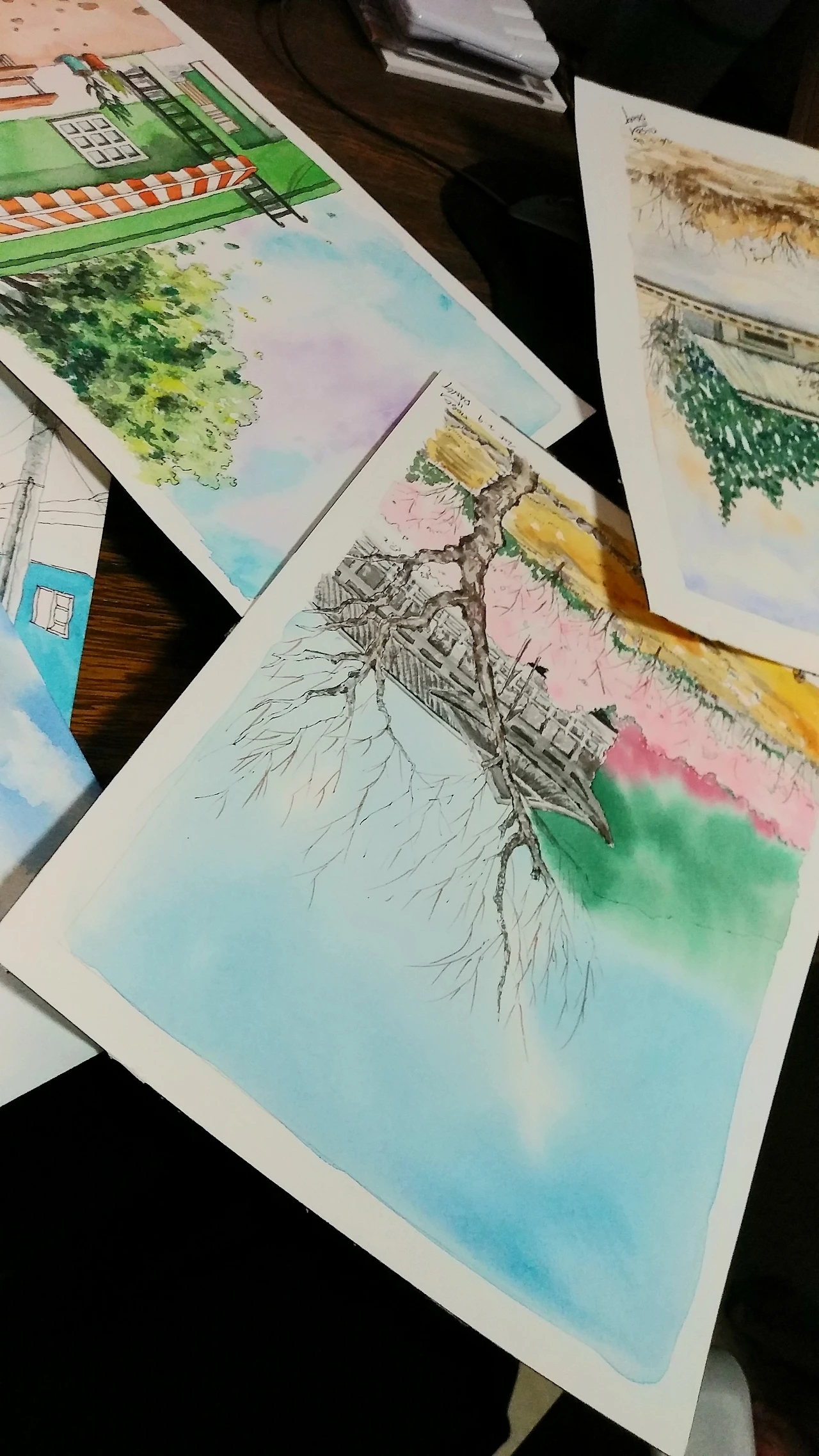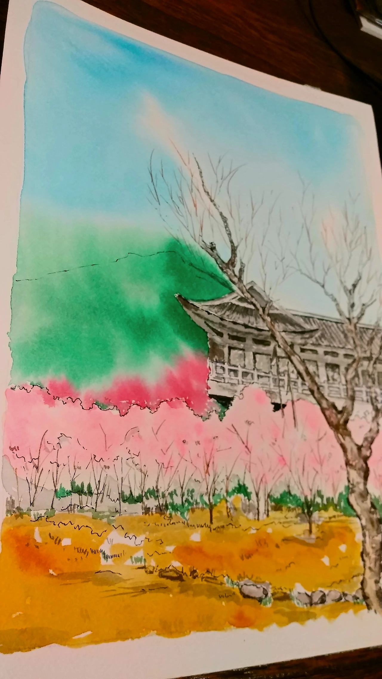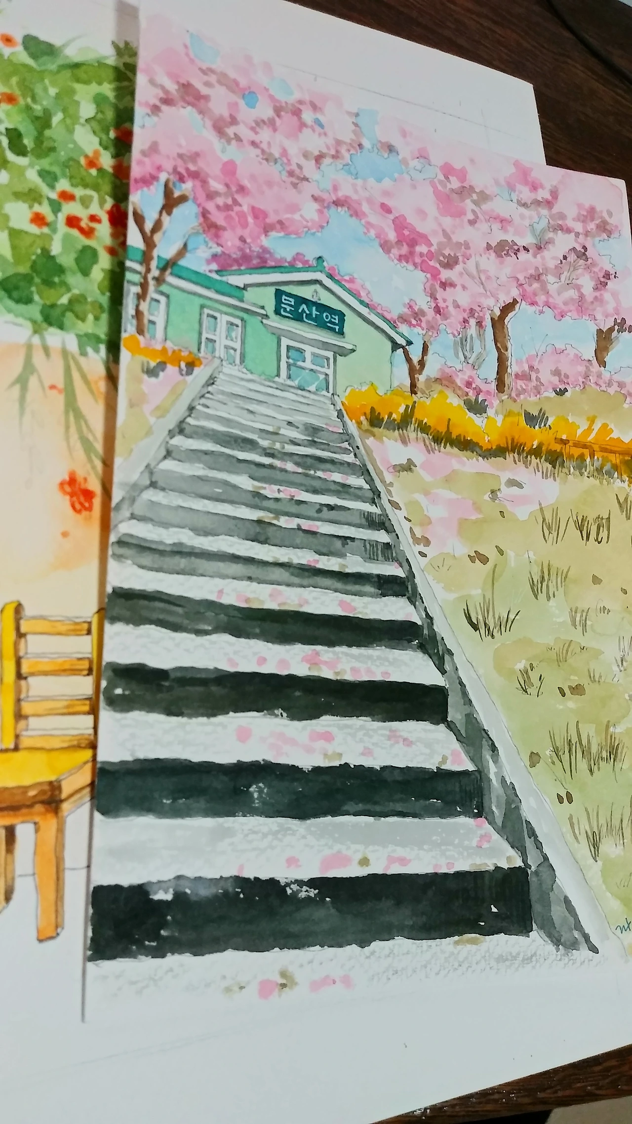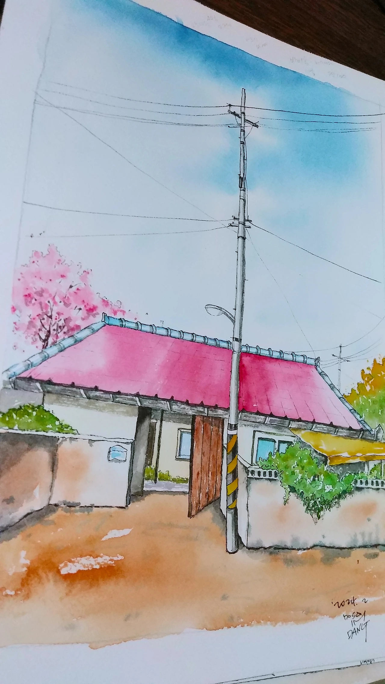 이번에 새로 시작한 책이 있어요. <사계절을 그리다>라는 어반 수채화 책인데요. 제 수준에서는 좀 어려워 보였어요. 저는 선 전문가(누가? 언제부터?)라서 색에 취약합니다. 색이 주를 이루는, 제 수준에서는 수채를 본격적으로 해야 하는 책입니다. 이건 도전이죠. 가진 능력으로 하던 그림, 그것을 뛰어넘어야 하는 익힘책. 재미로 놀아가며 하는 취미책이 아니라 연습하고 공부하고 익혀야 하는 교재였습니다. 이왕 가기로 한 거 누가 흉을 보겠어. 낙제를 주겠어. 혼자 실망도 하고 절망도 하고 고뇌도 하고 우울도 하면서 인생 배우고 그림까지 배우는 거지. 괜찮다 밀어붙였습니다.