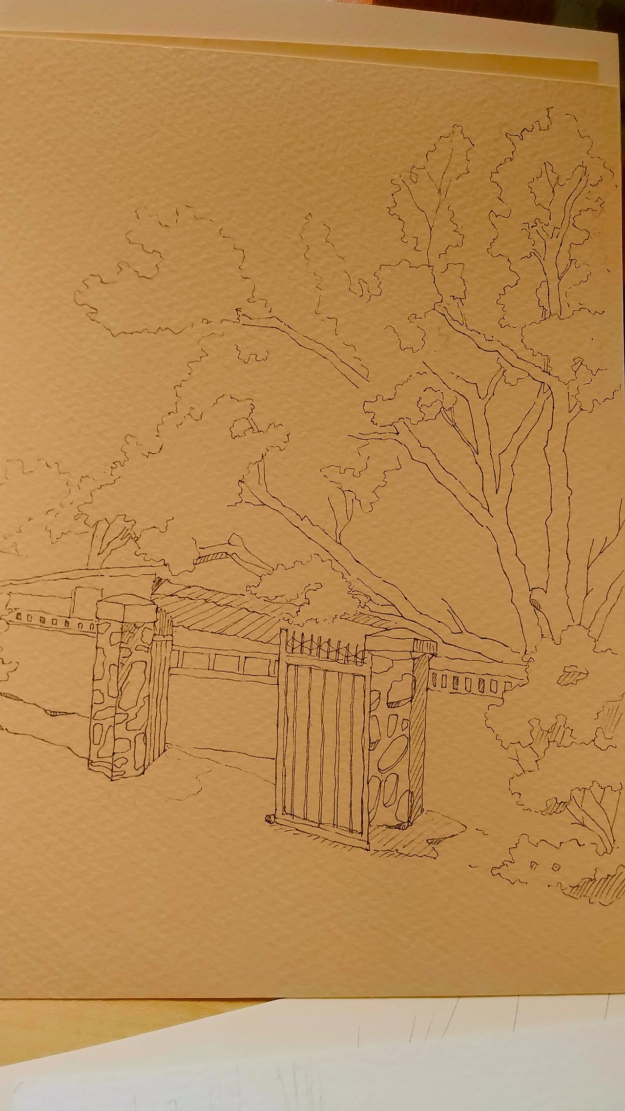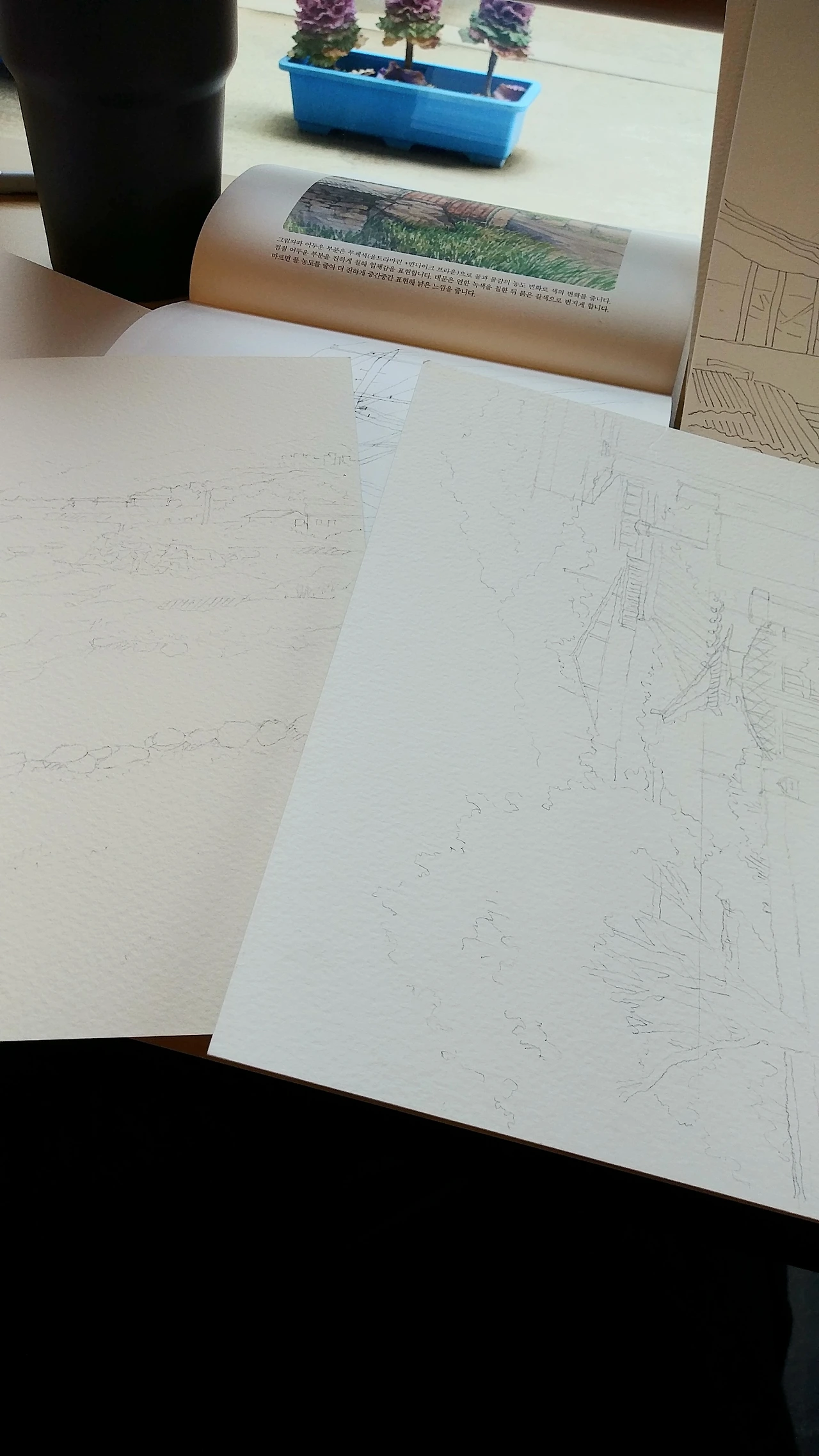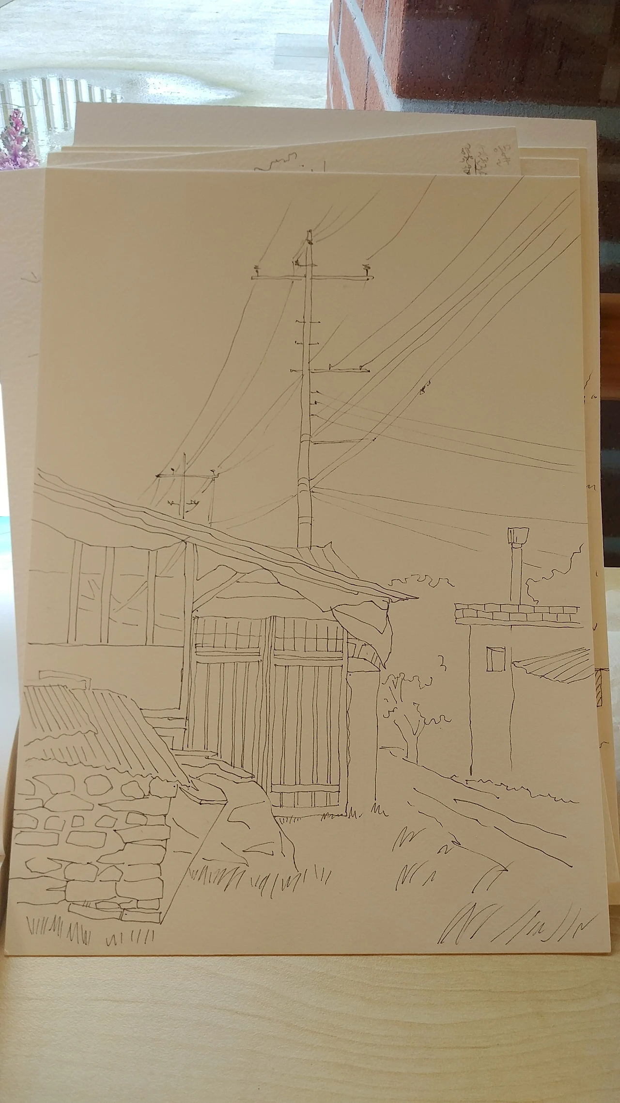 지난주 연필로 대략적인 스케치만 했고요. 이번 주는 물에 지워지지 않는 피그먼트 펜으로 선을 그렸습니다.