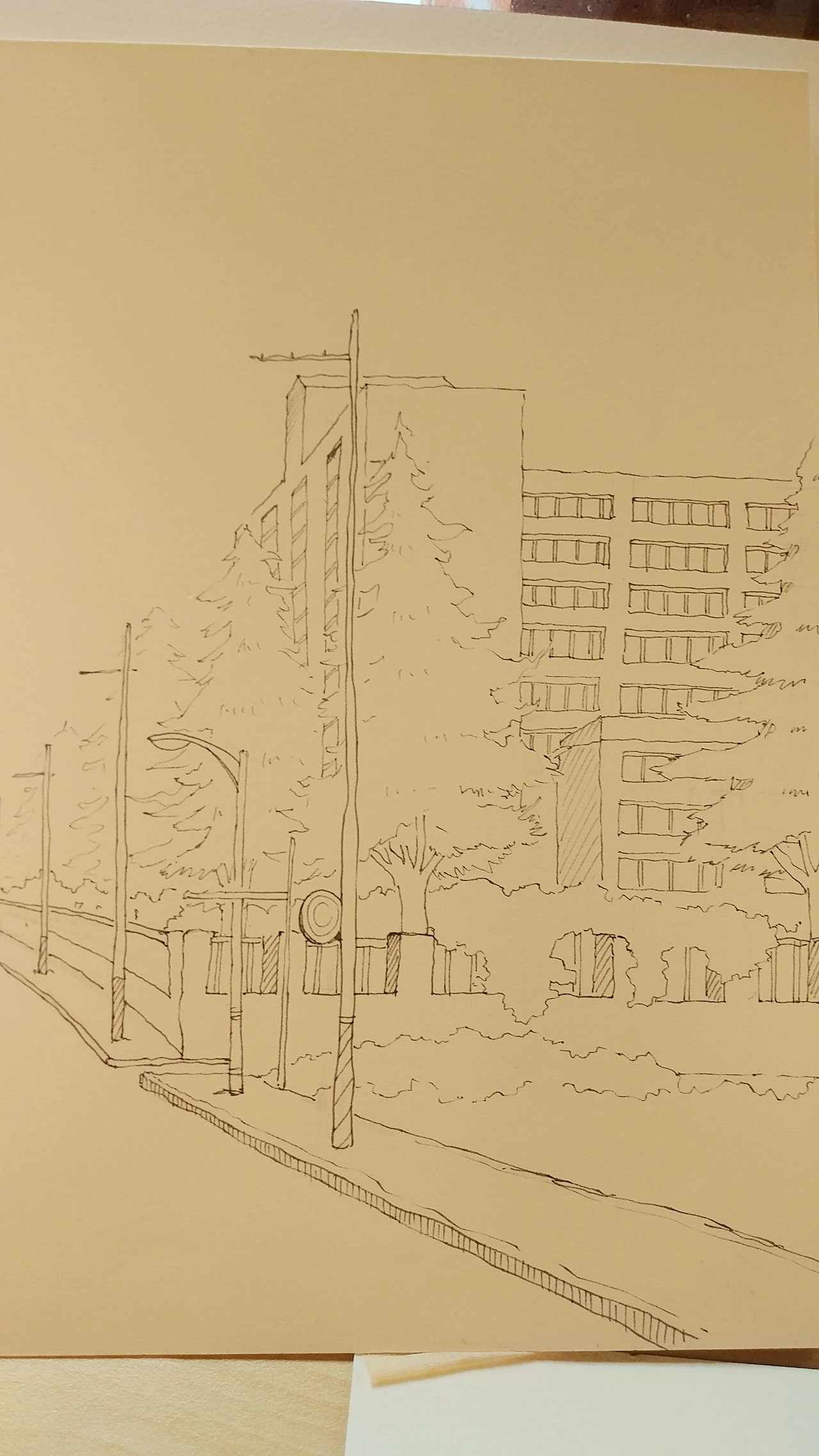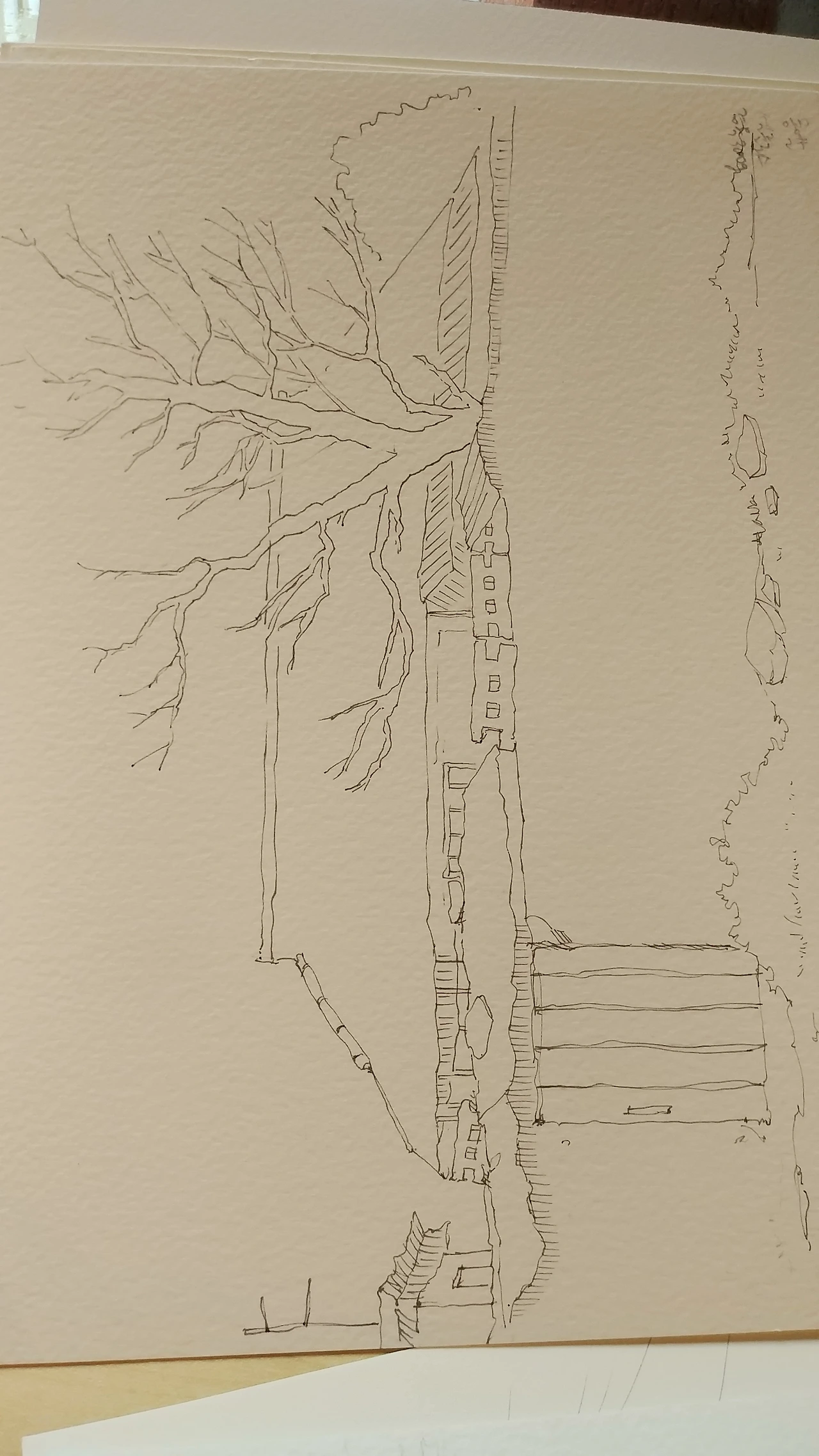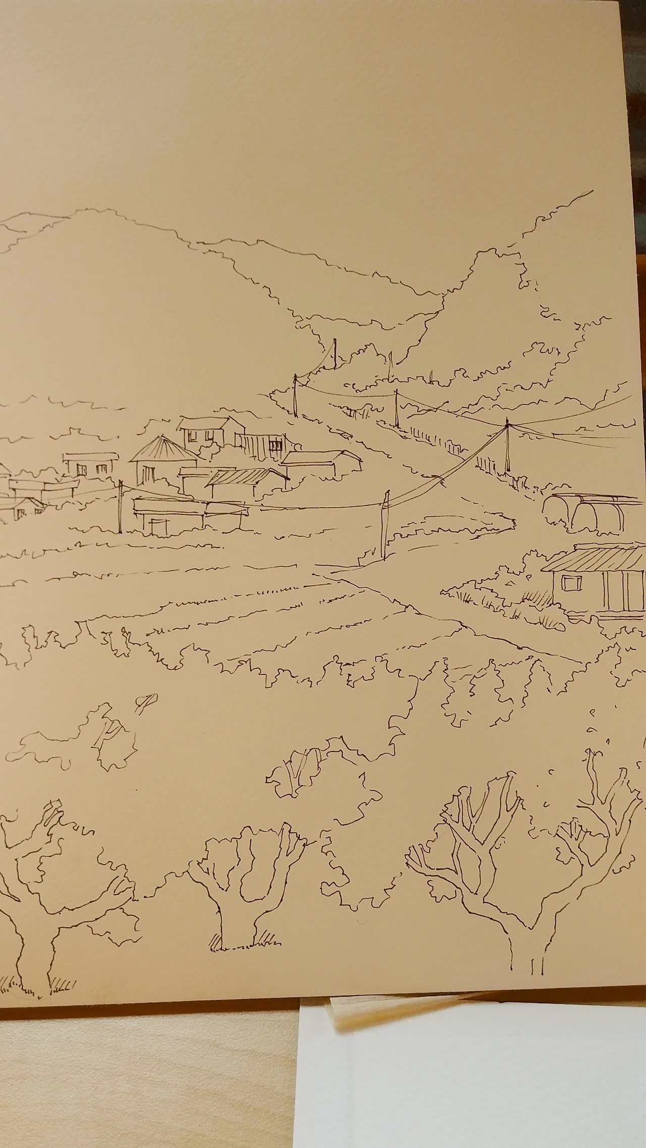 지난주 연필로 대략적인 스케치만 했고요. 이번 주는 물에 지워지지 않는 피그먼트 펜으로 선을 그렸습니다.