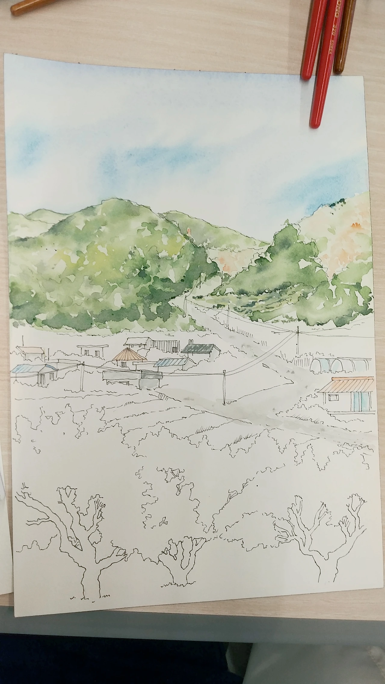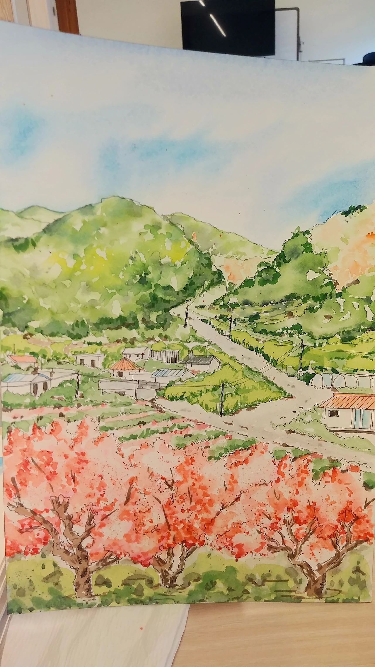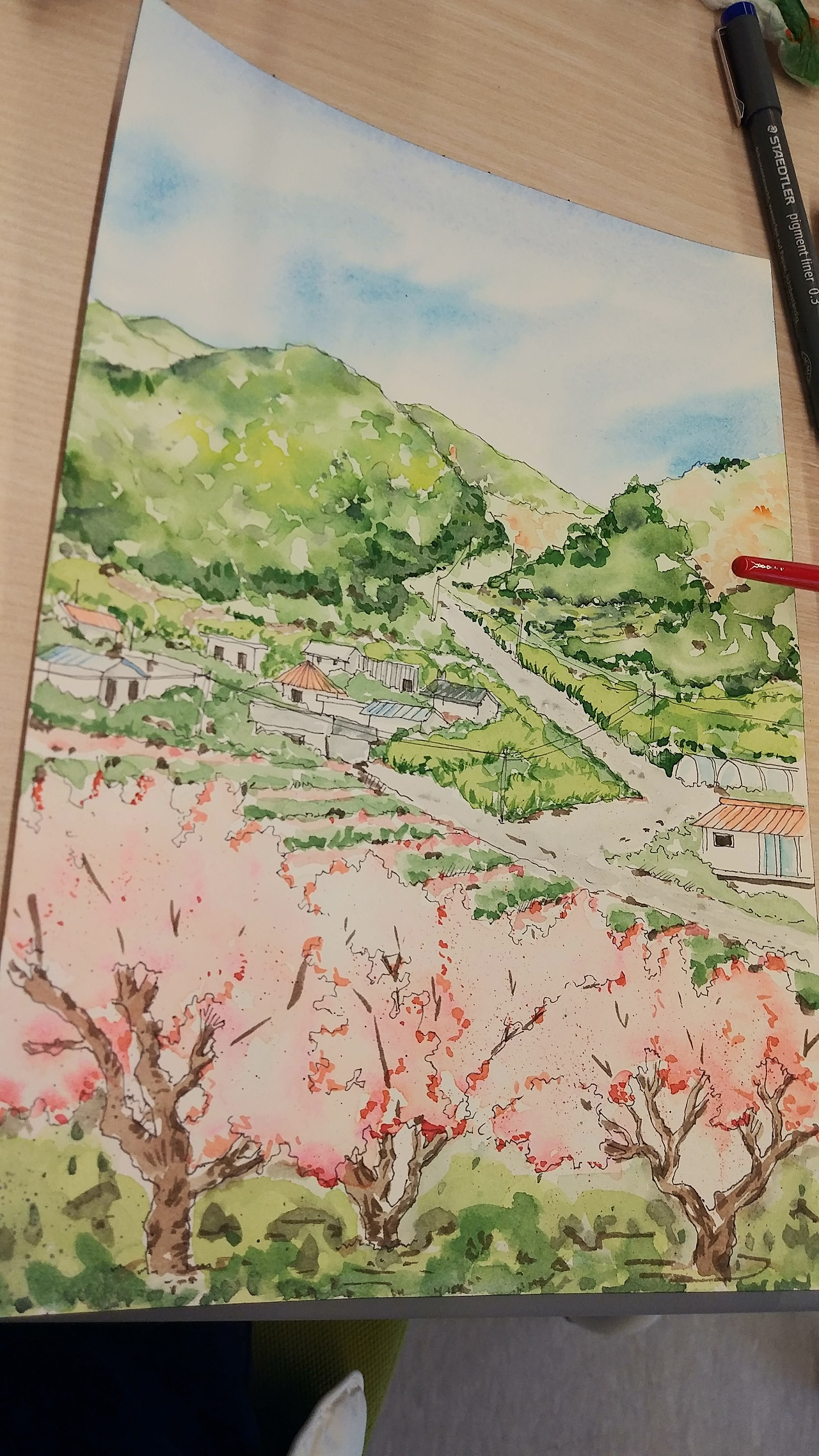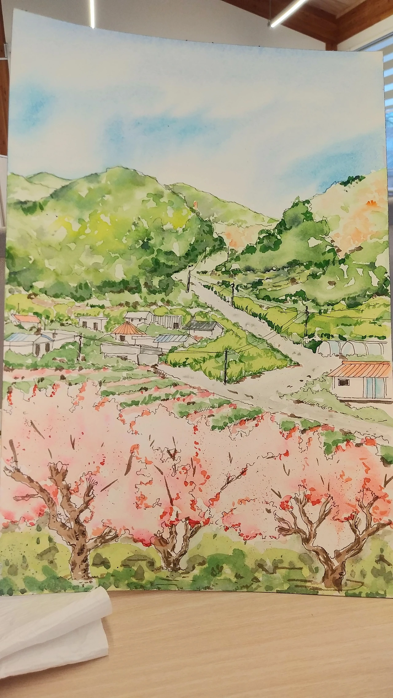 지난주 그림 하나 그려놓고 뻗었거든요. 힘들어서요. 색칠 반하고 누웠다 기력 회복하고 일어나서 다시 하며 완성한 인생 역작!이었습니다. 잘 그렸어요. 보면 볼수록 내가 했나 싶어 보고 또 보았지요(남들이 보기에는 별거 아니라도 제게는 대단쓰). 근데 글이 그렇듯 잘 써지는 날이나 찰떡같이 마음에 드는 날이 있는 반면, 제아무리 엉덩이를 의자에 방석처럼 붙박여도 글이 고산병 걸린 사람 등산하는 거처럼 위험해지고 포기만이 답처럼 보이는 날 있잖아요. 그림도 한번 잘 나온 거지 다음 그림 또 십보 후퇴겠지? 그 실망감 느끼기 싫어 미루고 미루게 되었습니다. 그런데 오늘이 무슨 날입니까. 연재 쓰는 날이지요. 일주일 치 그림 7개를 당당히 올리겠노라 허언했는데 거기서 끝내야지 거짓말까지 되면 안 되니까요. 붓을 또 작정하고 들었습니다. 그래 까짓 껏 해 보자! 망치면 또 그리면 되지. 어제 택배로 비싼 종이 또 왔다. 총알 장전되었다. 그림만 그려보자! 하는 비장한 심정으로 덤볐습니다. 으쌰. 붓이 겉돌고 그리기 싫고 하는 날들이 이어졌는데 오늘은 비도 오고 기분도 차분하니 무기가 손에 감깁니다. 챙챙 휘리릭 "톡톡톡톡" 무 써는 소리가 납니다. 됩니다. 그림이 됩니다, 여러분! 드디어 성공했습니다. 수채화똥손 졸업인 것 같습니다. 지난주에 이어 오늘도 벌벌 떨지 않고 색을 올렸습니다. 짙은 색도 무섭지 않고 조색도 조금 헤맸지만, 꽤 그럴듯합니다.