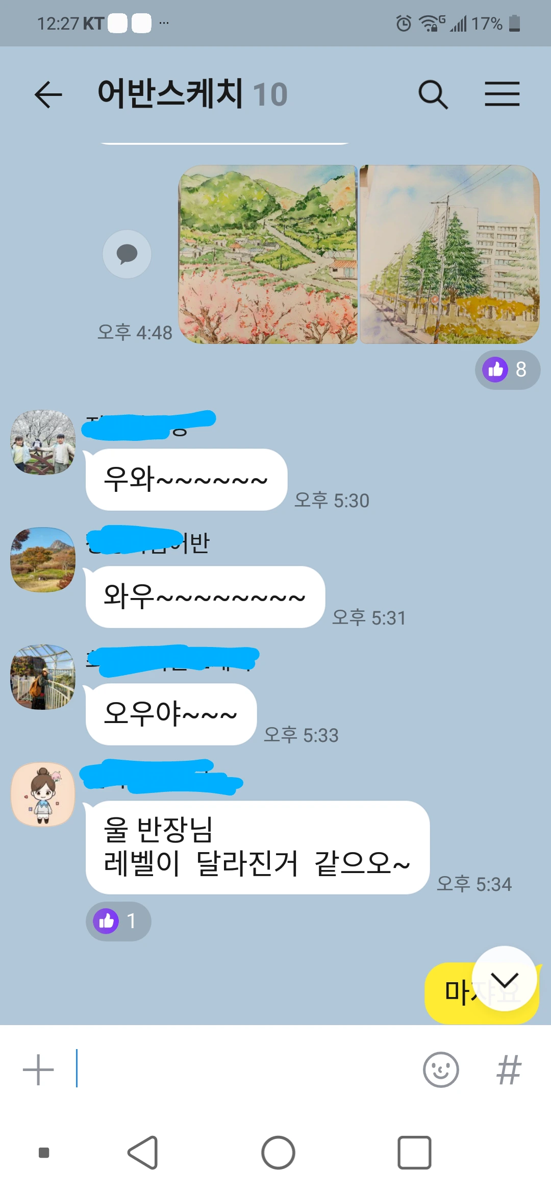 선 하나 그리며 서로를 폭풍 칭찬하고 색 하나 칠하며 이제 입시반 졸업하고 서울대 가라는 소리를 해대며 그림을 그리니 포기하고 싶었던 날들도 얼렁뚱땅 넘기게 되었습니다. 서로가 없었다면 '그런 적 있었지'하는 과거형으로 끝이 났을 겁니다. 이분들 이 시간이 있었기에 세계대전 급 층간소음 어머니와의 백년전투 사춘기 딸과의 국지전도 남편과의 각개전투마저 다 백기 투항 없이 휴전까지 올 수 있었겠습니다.
