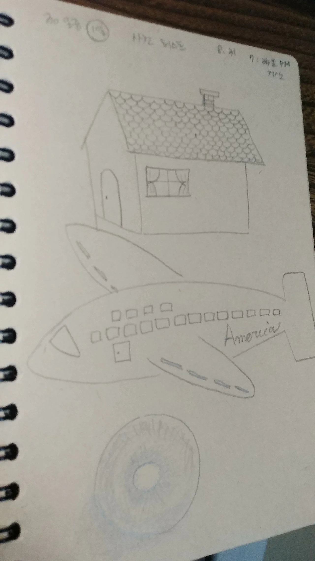 자.. 집과 비행기와 도넛을 그려보세요! 가 첫 장 시작입니다. 일단 본인 실력을 박제해 놓고 시작하는 거지요. 그러고 다음날은 <구>그리기.