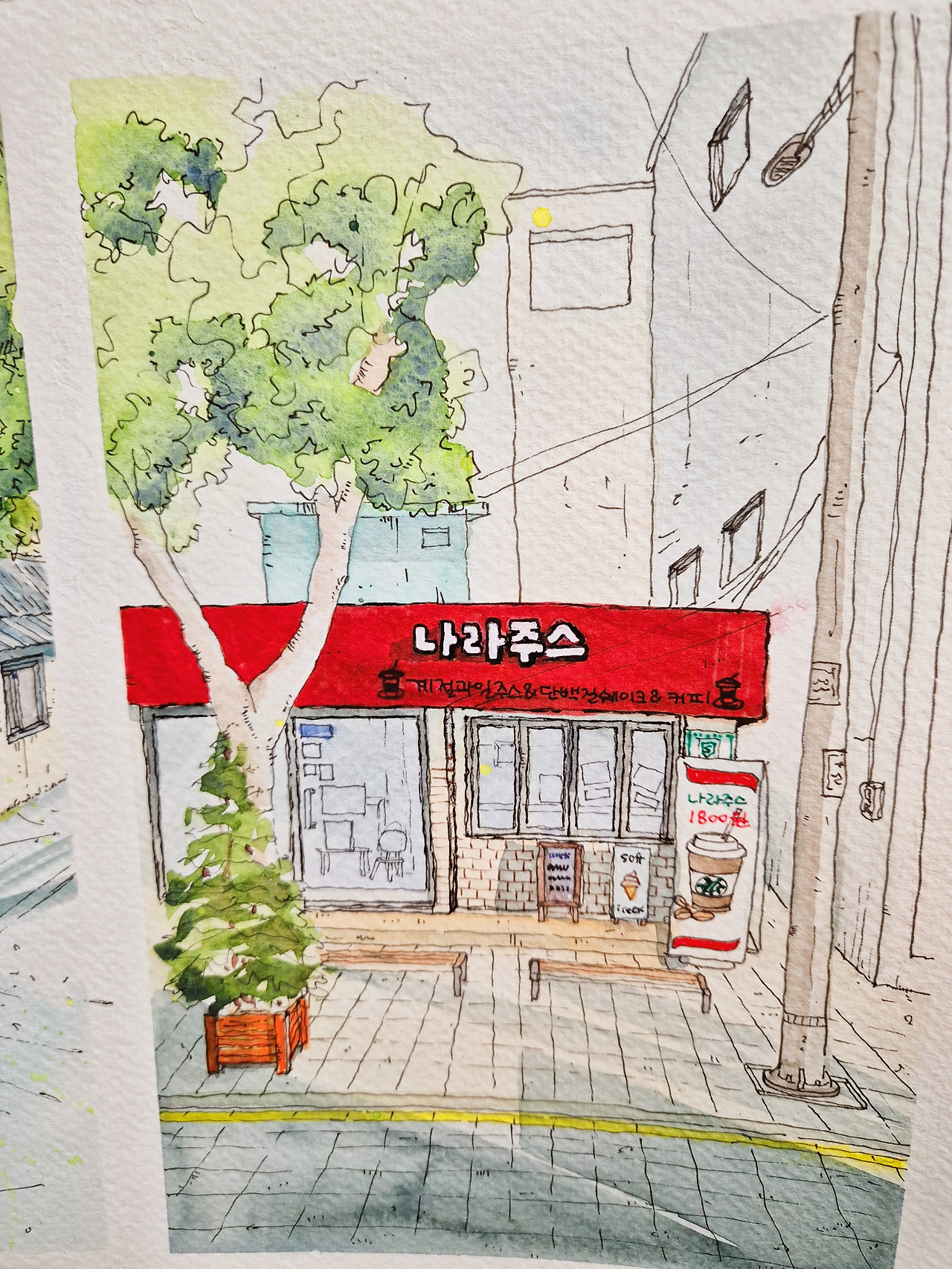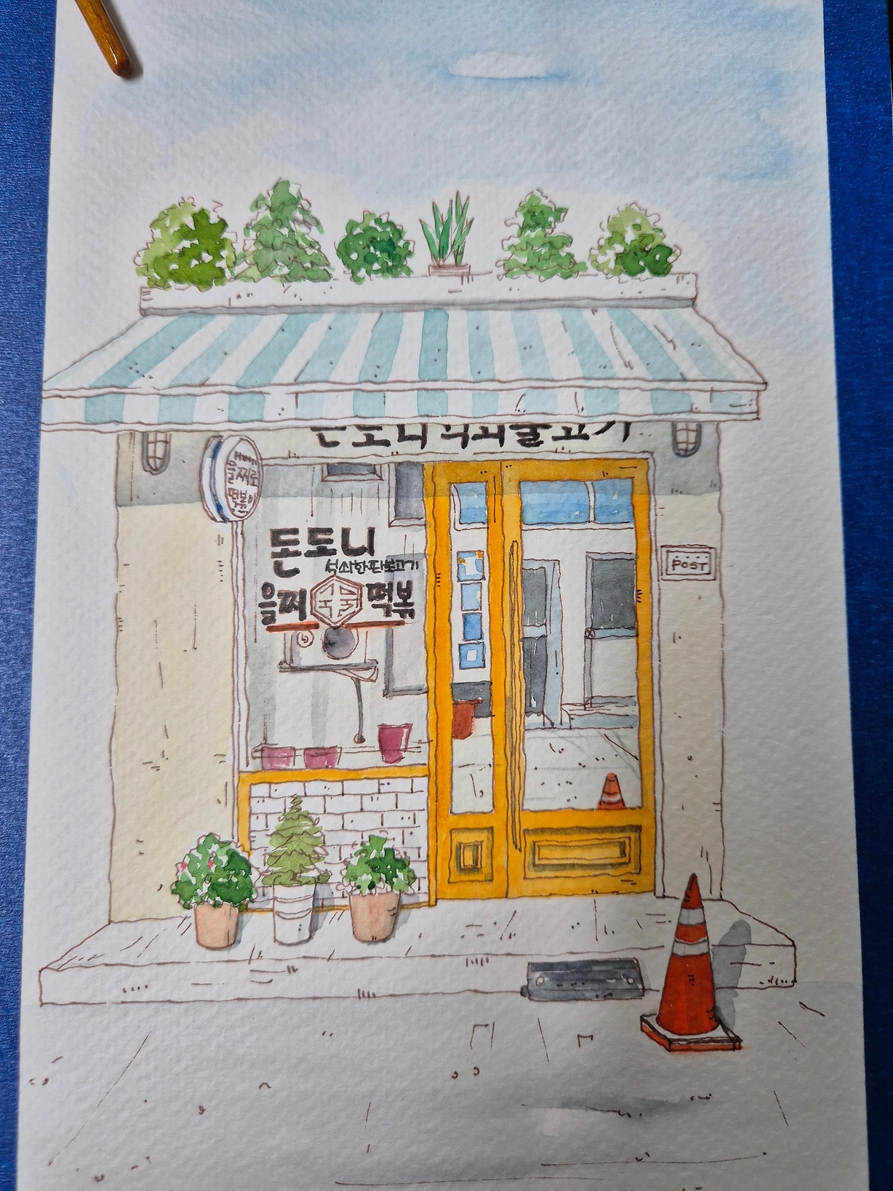 그려놓은 건 쉽게 그린 거 같은데, 내가 그려보면 잘 안 돼요. 어렵고 힘들어요. 뭐가 문제지? 남들도 그냥 이쁜 찻집 사진 찍었고 그걸 그렸는데 나는 왜 안 될까? 그런 걸 보면 뭔가 있나 봅니다. 도대체 무슨 요술이 있는 걸까요? 왜 너는 되는데 나는 안되니?