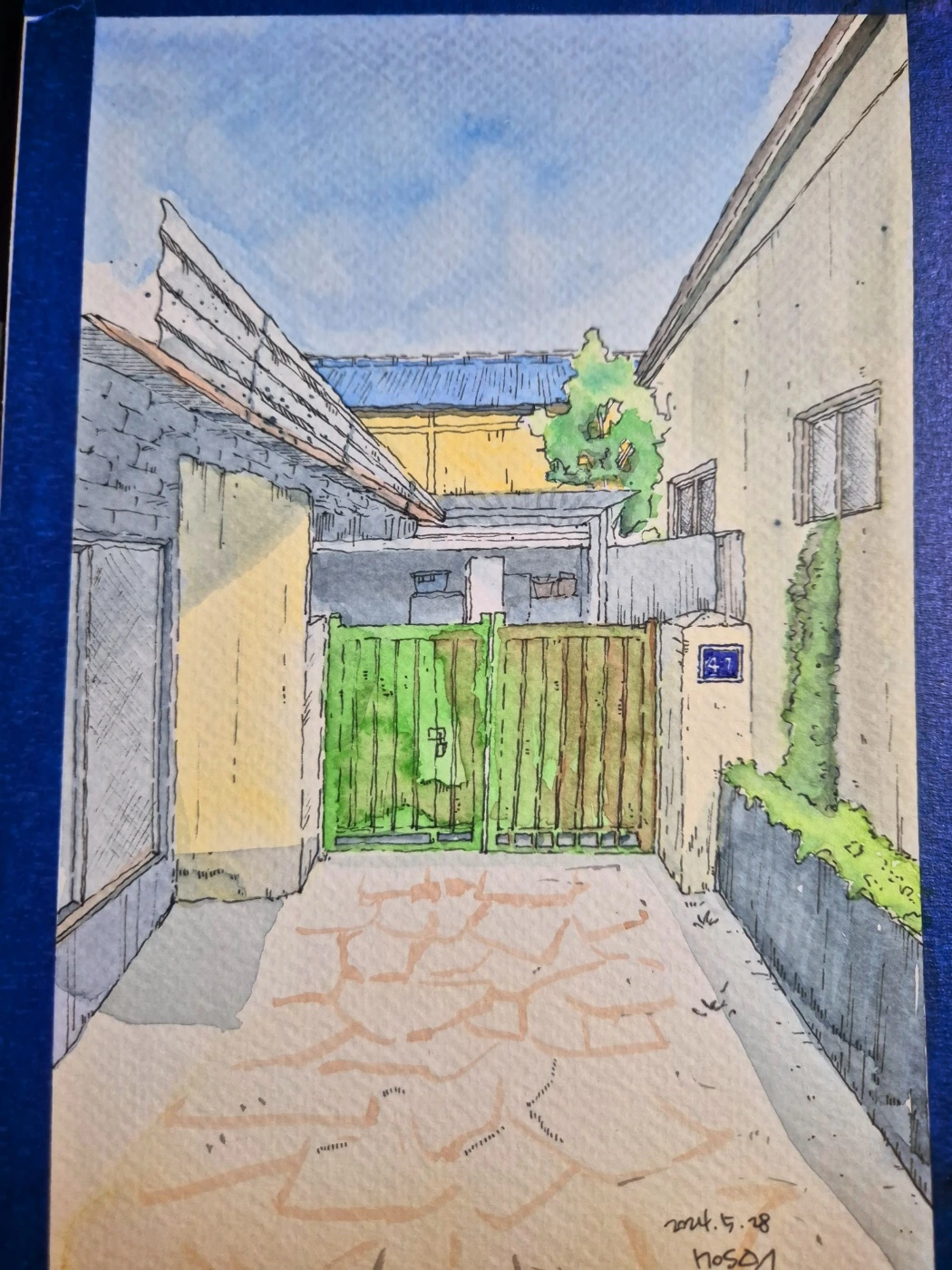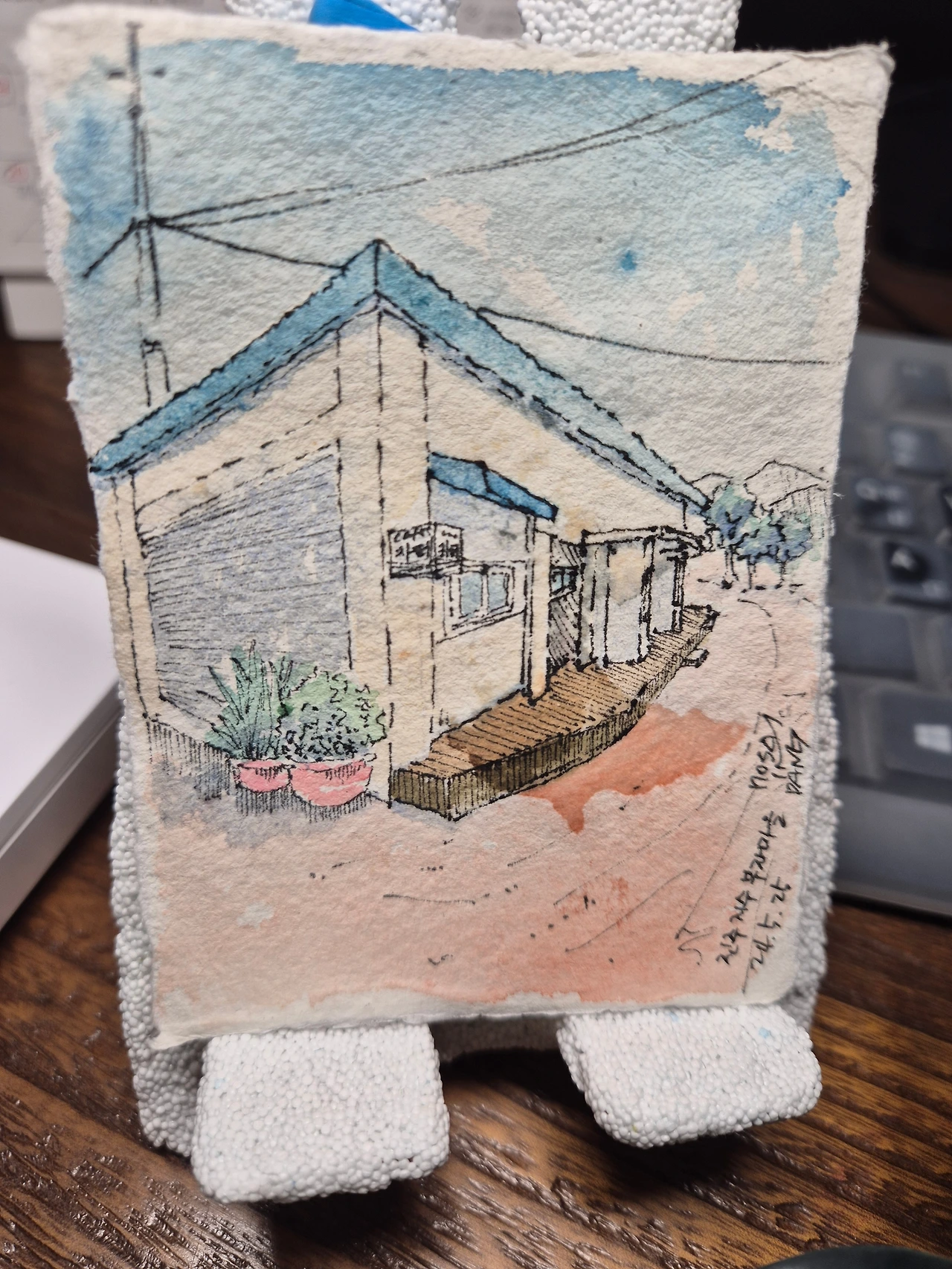 오늘 그림. 좋아하는 나이 많은 집 앞에서..