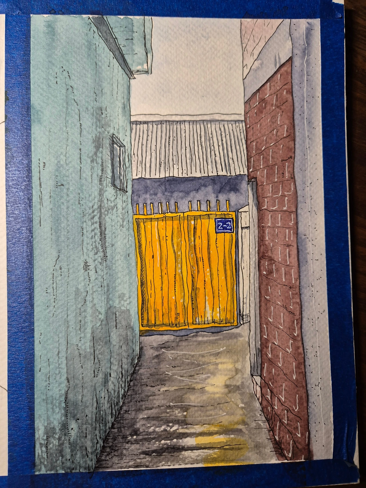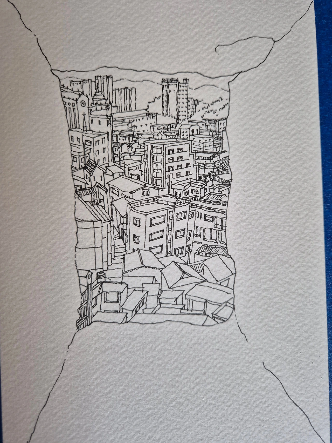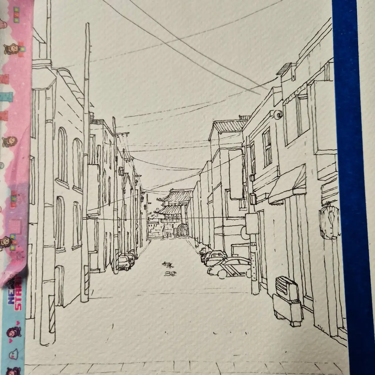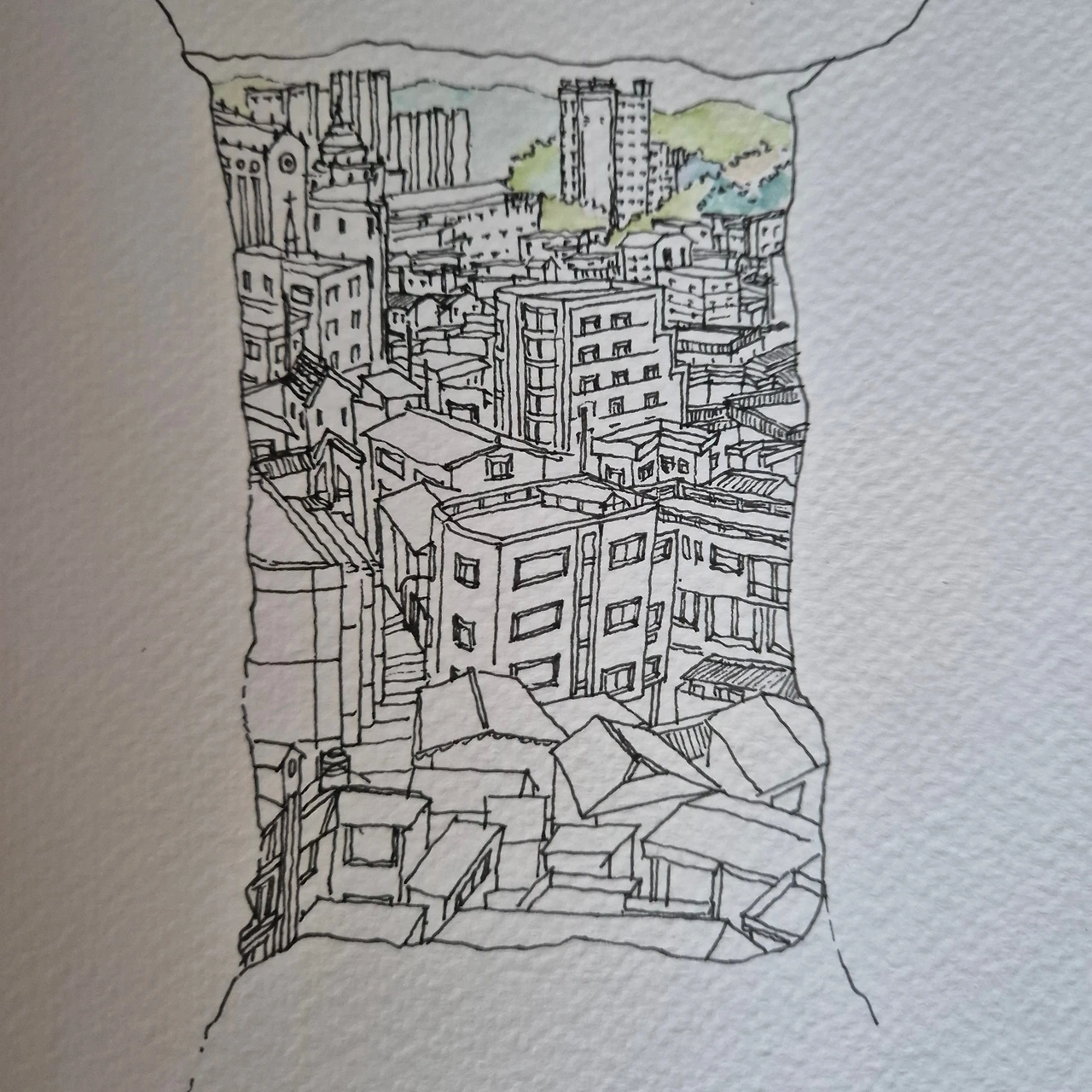 종이라는 공간으로 옮겨 넣는 것에 조금은 익숙해진 건지 모르겠습니다. 그림은 언제나 잘하고 싶은 '무엇'이어서 항상 부담으로 작용했는데 조금은 잘하게 되어서일까요. 아니면 매일 하다 보니 익숙해져 생각이 떠오르기 전에 손이 먼저 움직여서인지도 모르겠습니다. 습관처럼요. 펜으로 주변을 종이 위로 옮겨 놓듯, 오늘 본 화사하고 이쁜 하늘과 골목 색들도 수채화 종이에 옮겨놓을 날이 언젠간 오겠지요? 그날이 사실 빨리 오면 좋겠습니다. (큰딸은 제 그림의 관객이 되어주는데 제 초록이 이쁘다고 하네요. 건물 선이랑요. 선은 끄덕이겠는데 색이 이쁘다니 잘하라고 하는 소린가.. 싶긴 합니다^^)