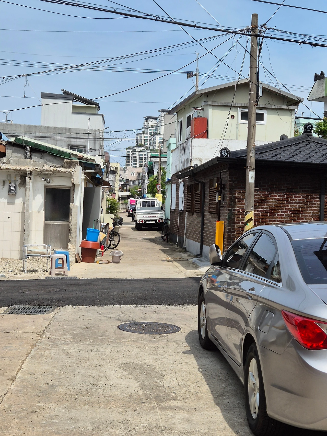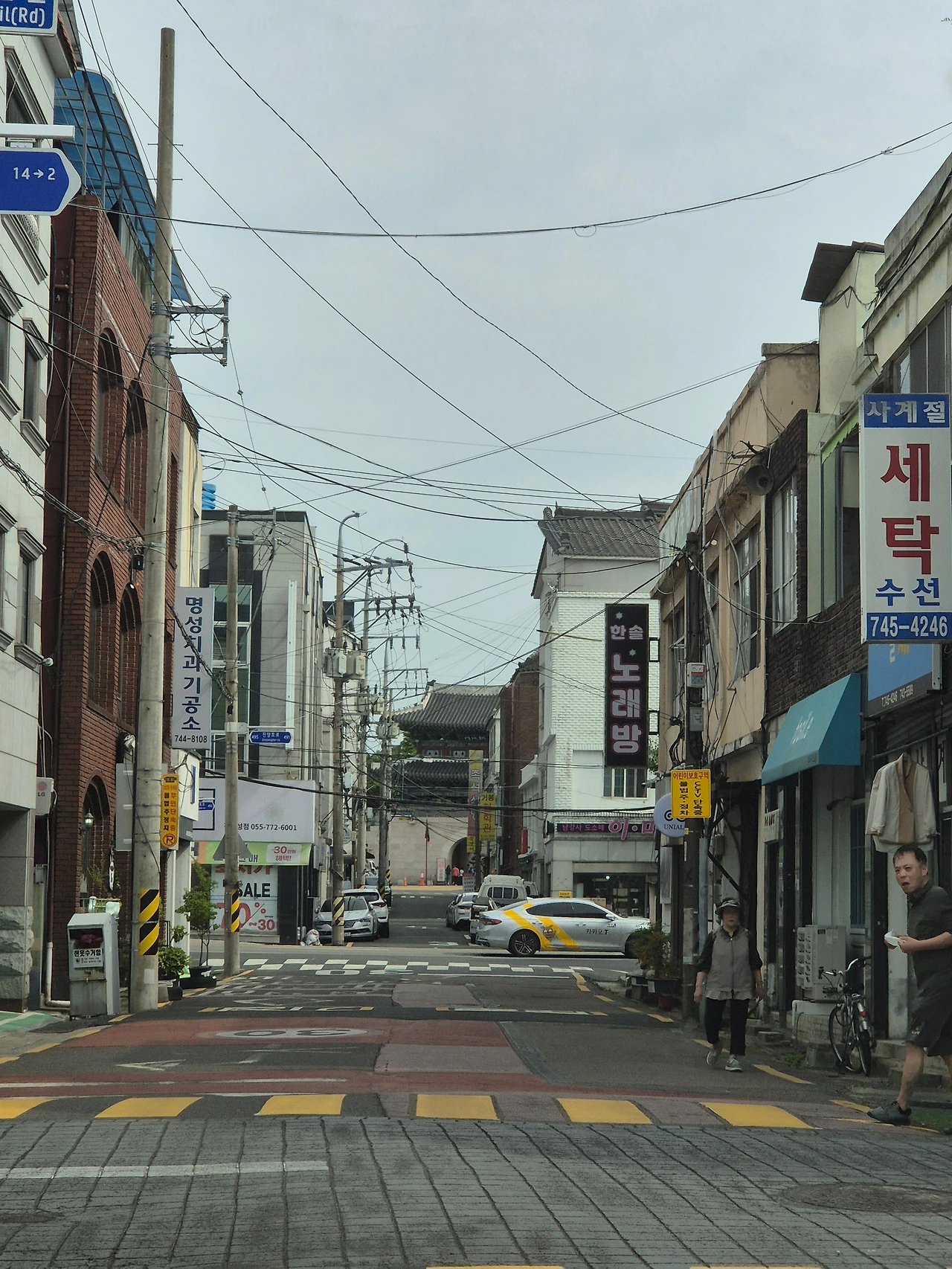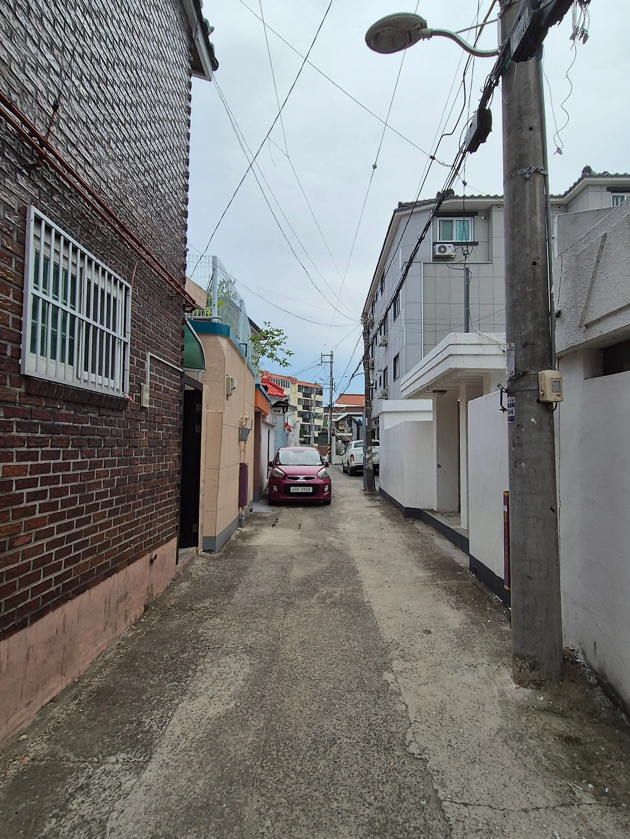 전시 끝낸 그림 챙기고 그림 그리고 수다도 떨고 커피도 마시며 모두들 편안히 취미를 즐깁니다. 동아리방에서 세 시간 정도 그리니 오후 1시에 끝이 났어요. 전시 쫑파티 핑계를 대고 밥이라도 해야겠지만 이번 주말 제 방통대 시험이 급하다 보니 할 수 없네요. 그렇게 회원분들과 헤어졌습니다. 겸사겸사 액자와 그림들 가져가려 바쁜 백수남편과 함께했네요. 저의 동아리 활동 시간에 도서관에서 공부하겠다 따라나선 김에 시킨 일이지 액자 몇 개 때문에 부른 건 물론 아니었고요. 그렇게 남편과 나온 길 집순이의 바깥사람, '밖돌이' 남편이 임장을 가자 시내를 가자 하네요. 혼자였으면 집으로 바로 갔을지 모르는데 2,900만 원짜리 12평(당근에 올라왔길래 제가 운을 띄웠지요. 다주택자 하고 싶어서요.ㅋㅋ) 구시가지 집도 구경하고 시내에서 지난주 그린 주스 가게도 지나치며 걸어도 봅니다.