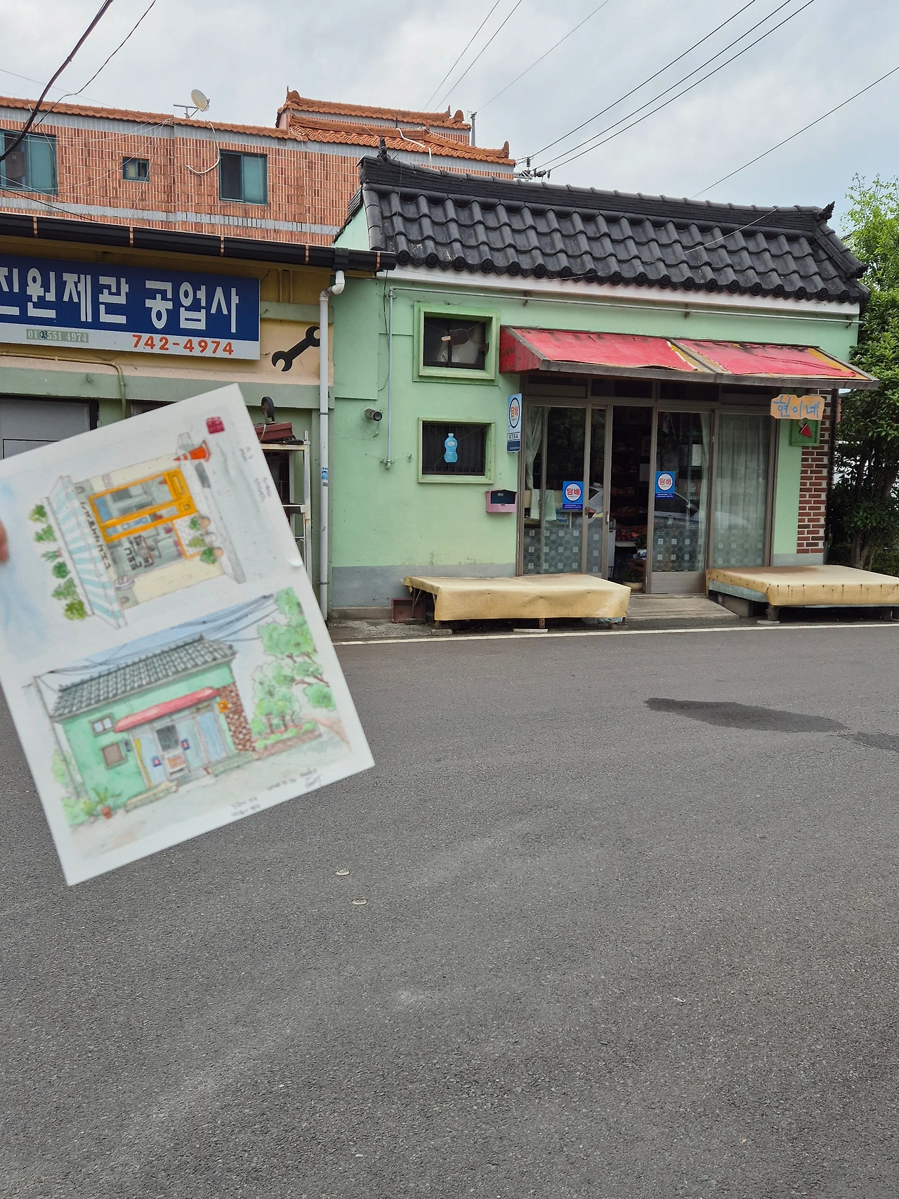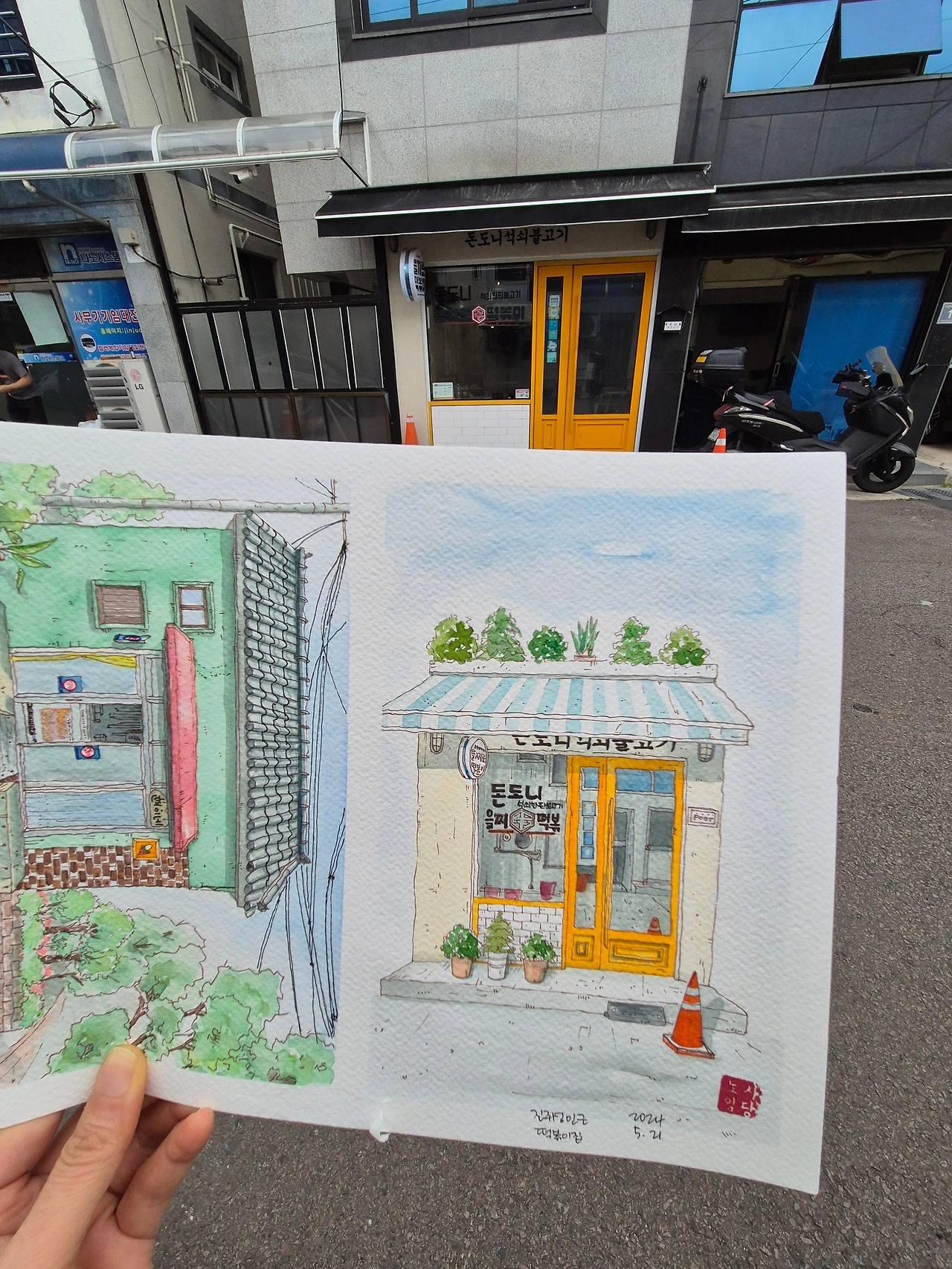 2주 전 그림 재탕 곰탕 하기. 그 자리에서 그린 척 건물 앞에서 찍기. (겸사겸사 떡볶이 먹으러 갔더니 배달만 한다며... 가게가 이렇게 이쁜데 안에서 못 먹어.....허억. 발길을 돌려 찻집에 갔다는 전설이... )