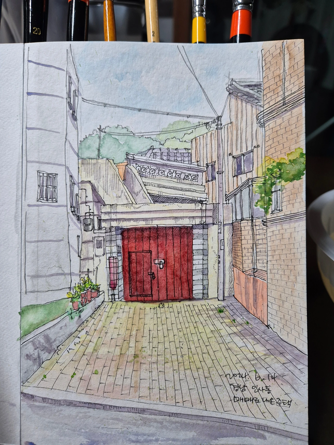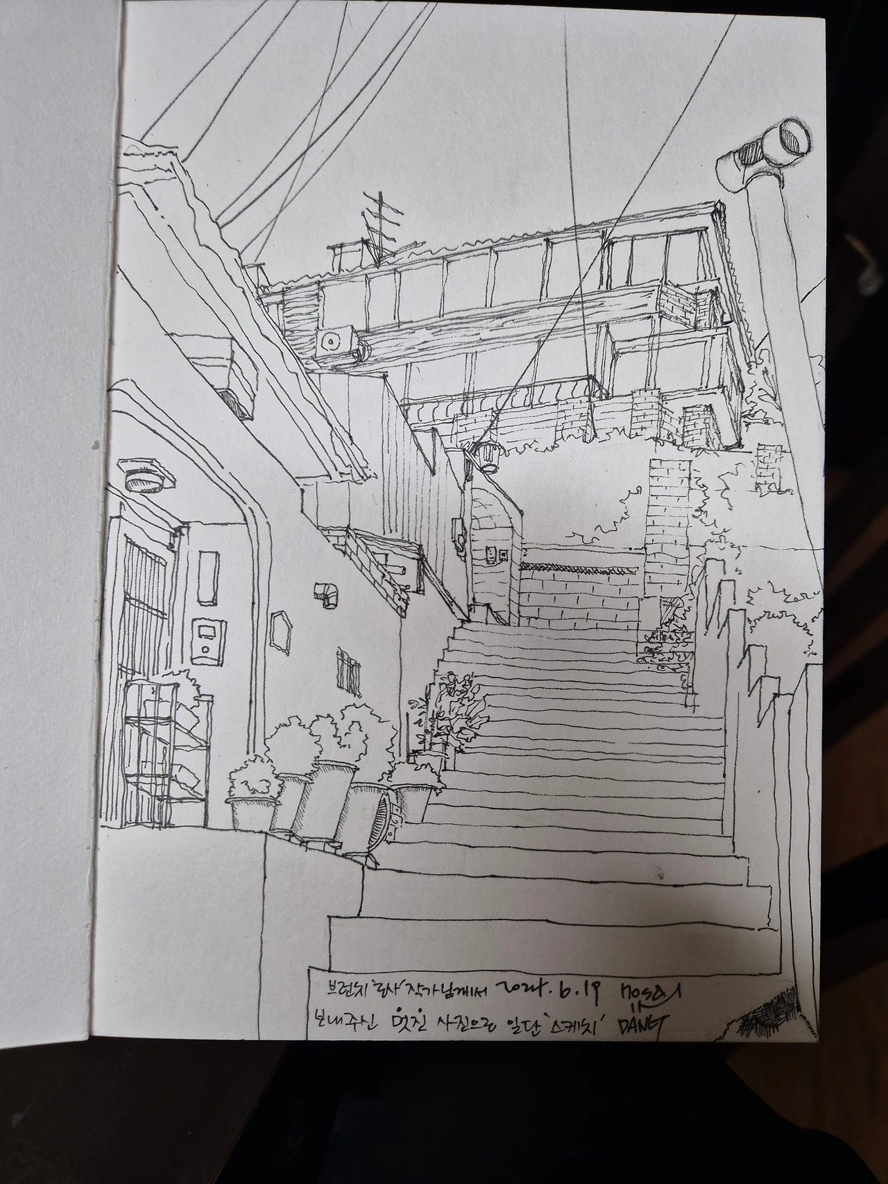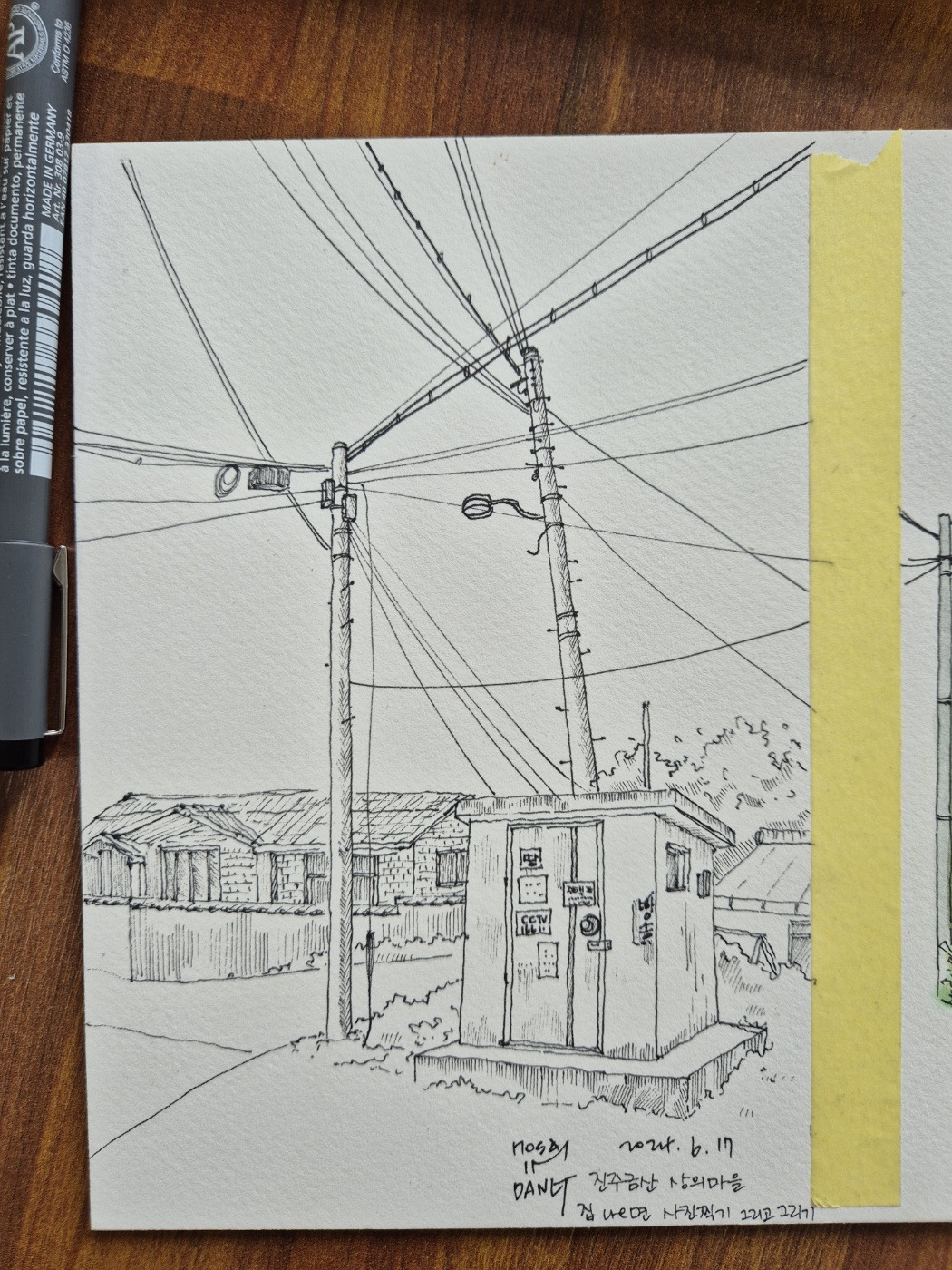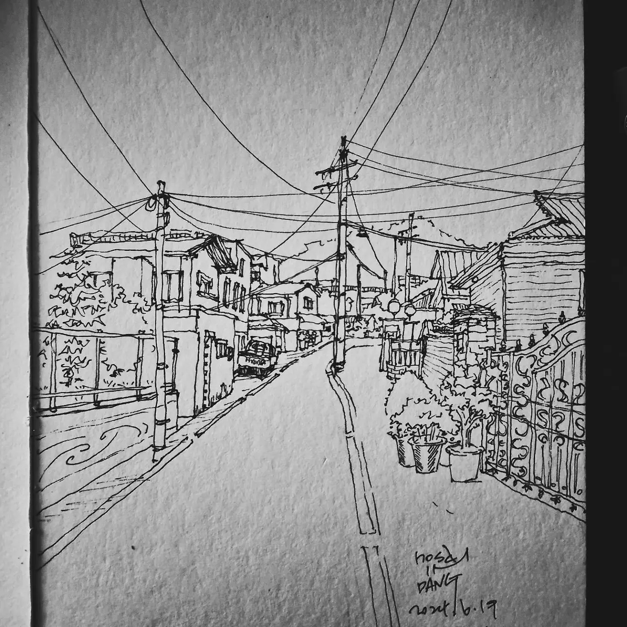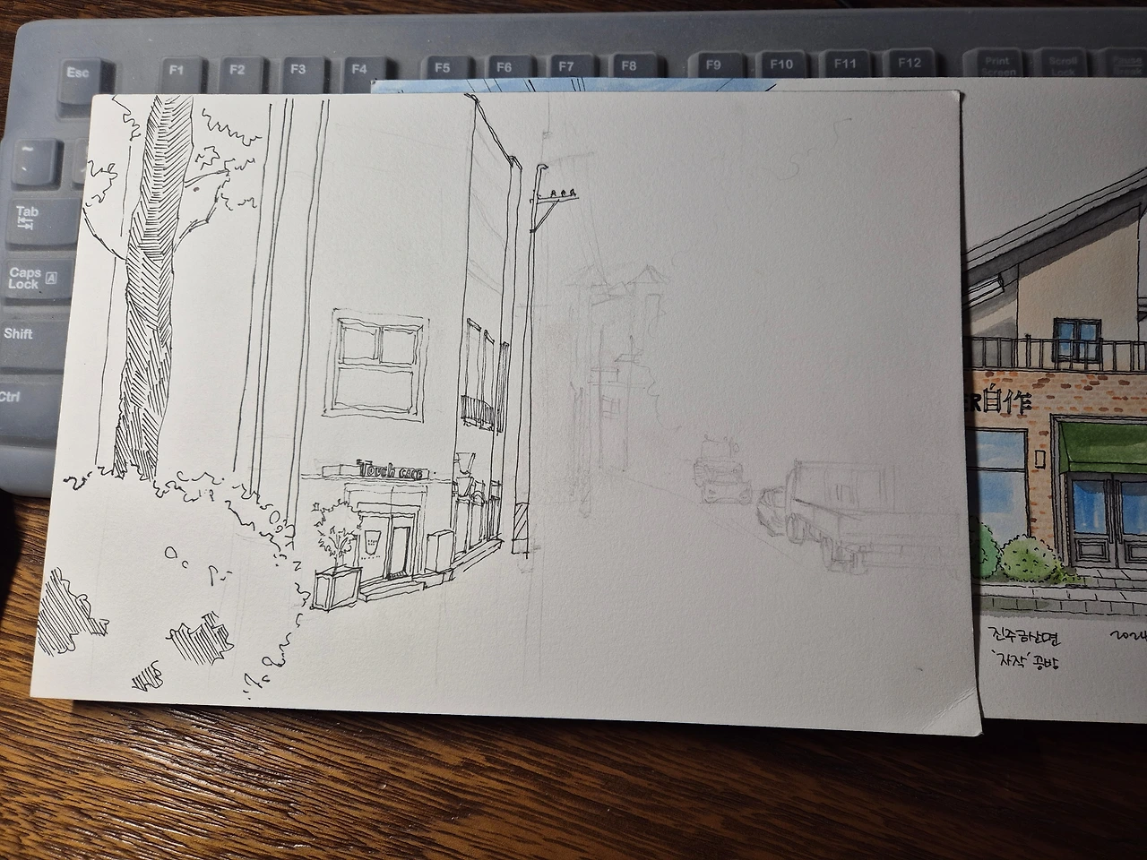 돈가스 가게 근처. 트럭 앞에 폐가를 찍으러 달려가다 이뻐 보여서 찰칵! 일단 펜스케치만 쓱쓱. 내일은 색도 넣어볼까나~~~