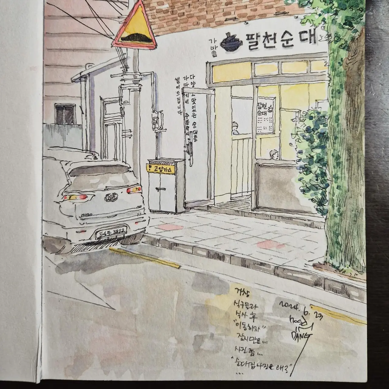 (새로 시킨 종이가 언제 오려나…. 실력도 아직은 -미숙아!- 부족한데 수채화 종이까지 다이소급이라 색 표현도 안 되고 우울함에 한 스푼 미원을 뿌리네요. 우울함에 맛이 난다 맛이 나! 내일부터는 다시 용맹정진할게요. 누가 뭐래도. 내가 뭐래도. 할 일만 하는 거로. 글도 그림도 맞지요?)