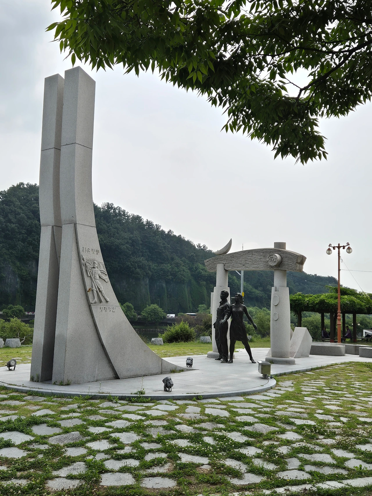 현재 임시로 옮겨놓은 형평운동 기념탑. 진주성 외성 공사중인 관계로 이사는 했지만 언제 제자리를 잡을지 모르겠습니다.