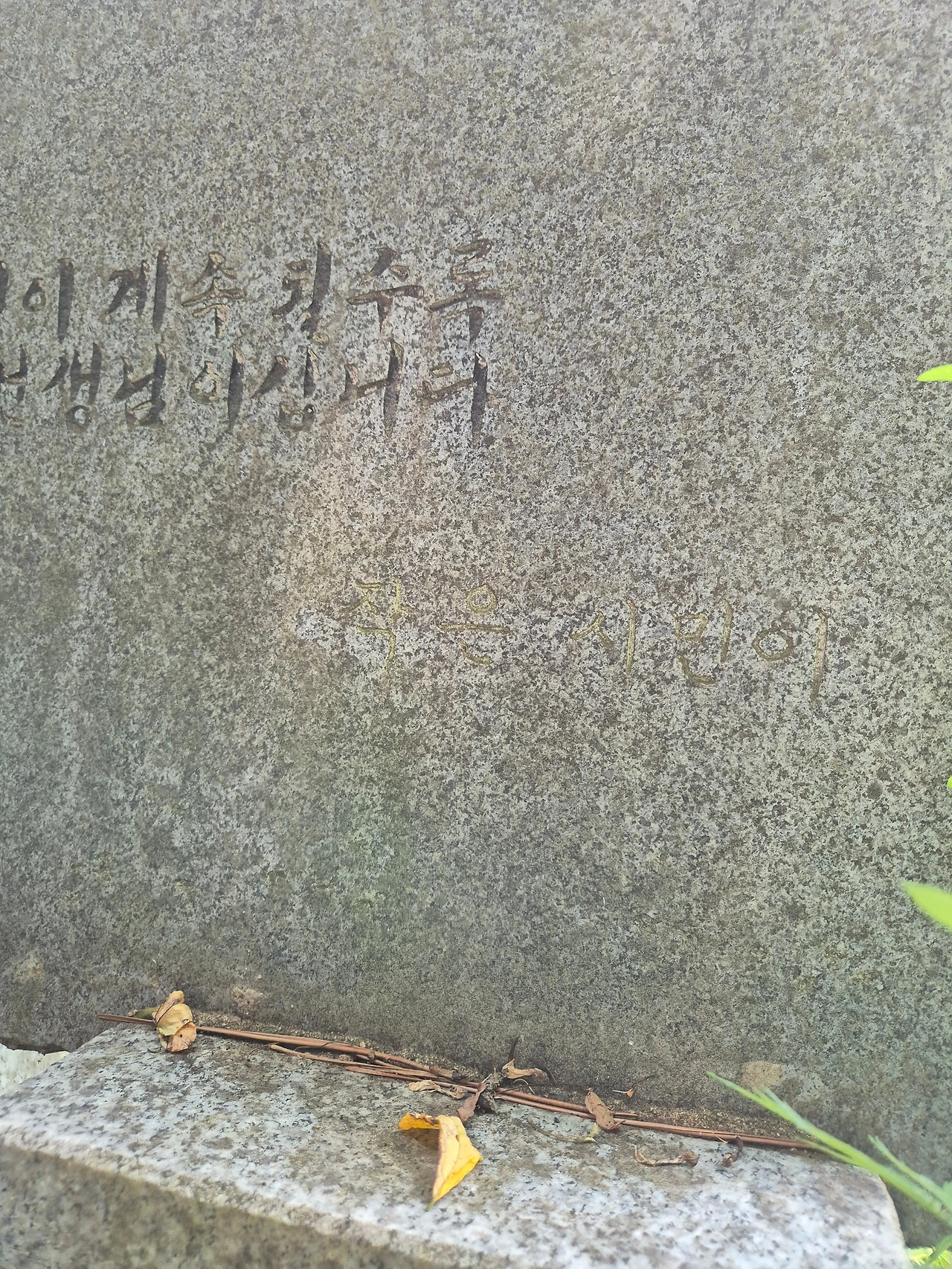 세 번째 사진 날짜 비석 뒷면 주목. 선생의 반대에도 불구하고 새겨진 글자. <진주의 작은 시민이> 라는 문구의 시민은 김장하 선생을 의미합니다. 글자가 보이지도 않습니다. 진짜 알고 봐야 보입니다.