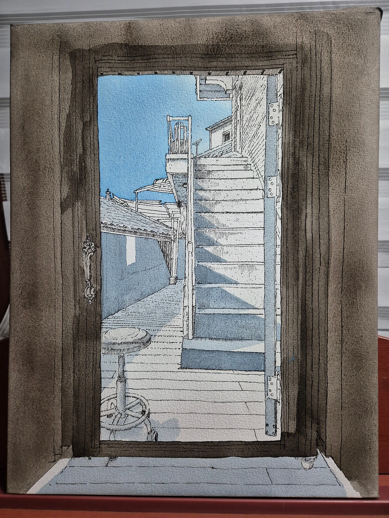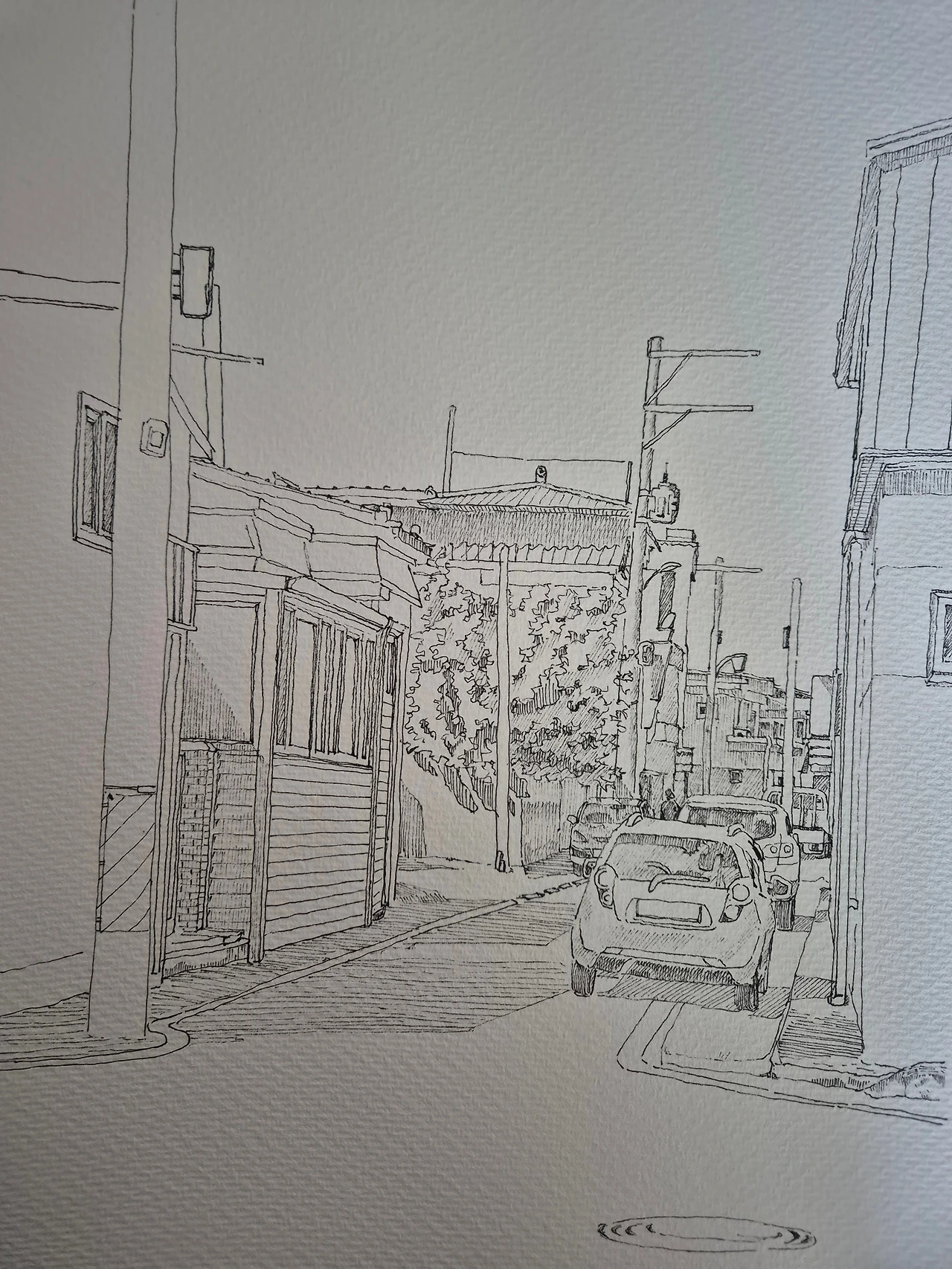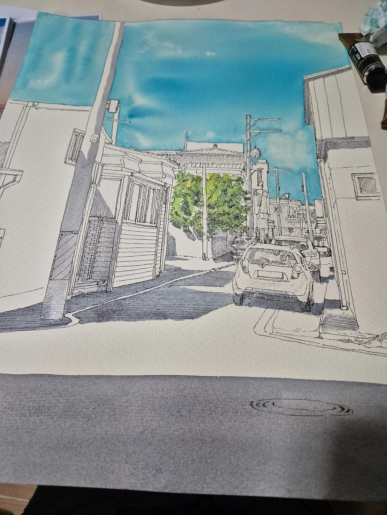 어반스케치의 화룡점정. 전깃줄을 안 그렸다. 이것도 내일의 숙제로 패스~~