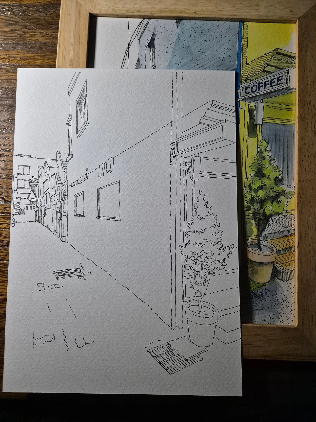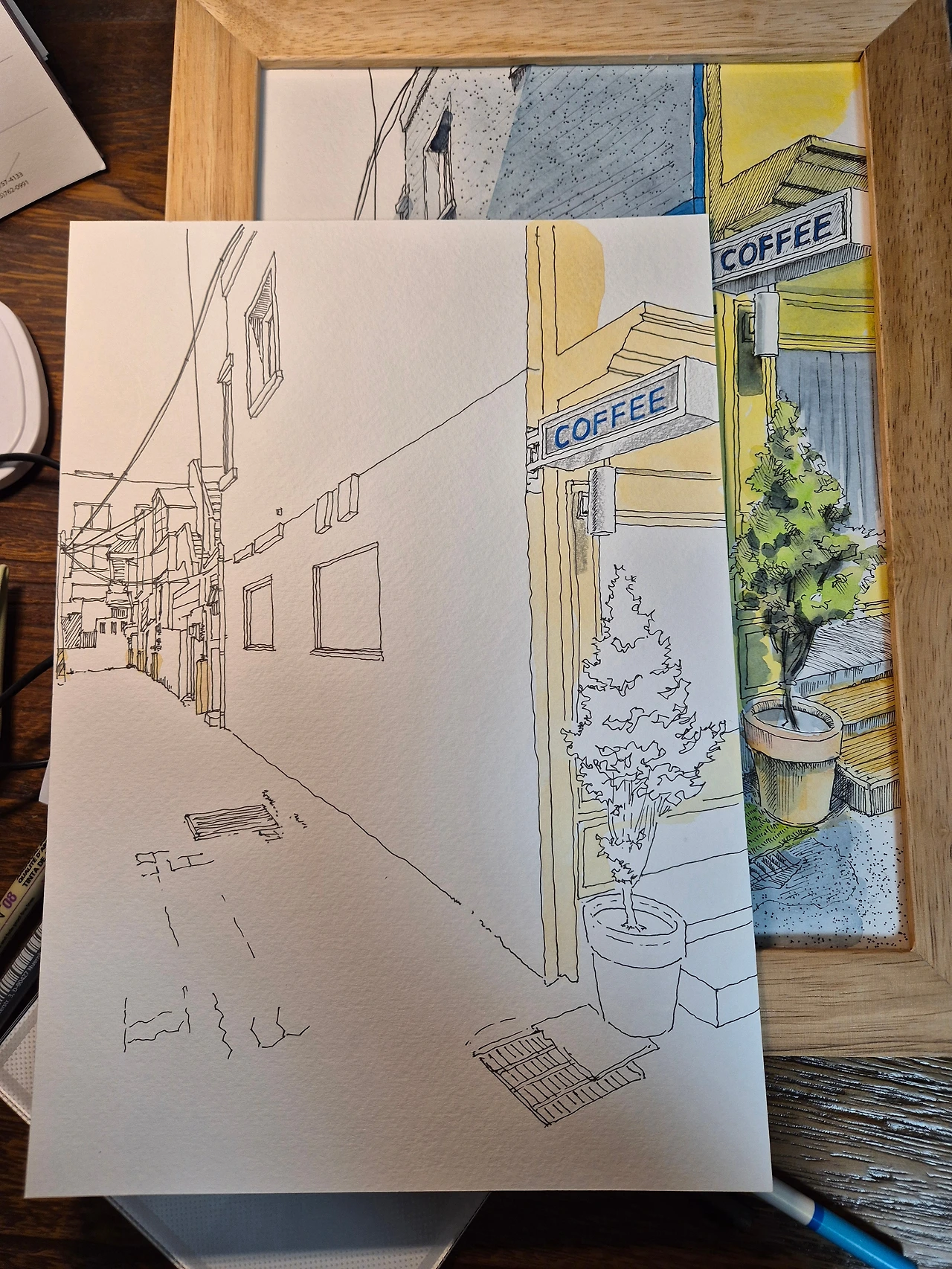 (왼) 어제 그린 그림 색연필로 적당히 둘러댐. (오) 밑에 보이는 색을 입힌 그림이 너무 흉해서(가린 부분 ㅎㅎㅎ) 선 작업 다시 했습니다. 내일 포인트 색만 올릴게요.