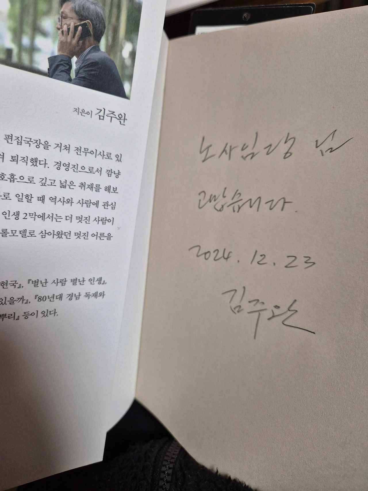 브런치 작가님이기도 하신 김주완기자님께 책 서명도 받았답니다^^ 배우님께 받은 선물에다가 진짜 산타입니다. 참 대문 속에 보이는 타포린백 선물도 받았지만 영화관 복도에 쇼핑백 줄이 엄청났답니다. 그걸 못 찍었네요. 배우님과 사진찍기 바빠서요^^