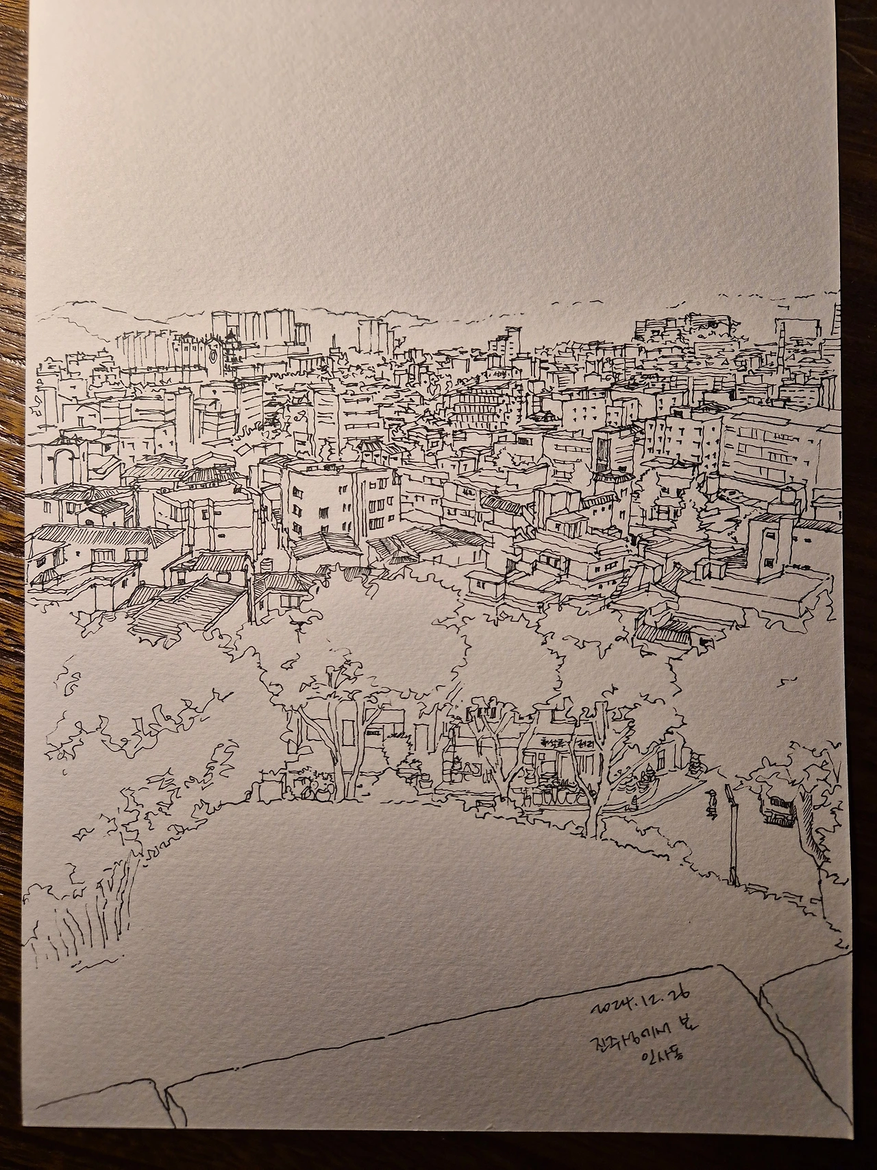 오늘 그림. 아 눈~~ A4에 그린 펜화. 비슷하지만 어제 그림 아님 주의. 어제꺼는 아직 손 못 댐