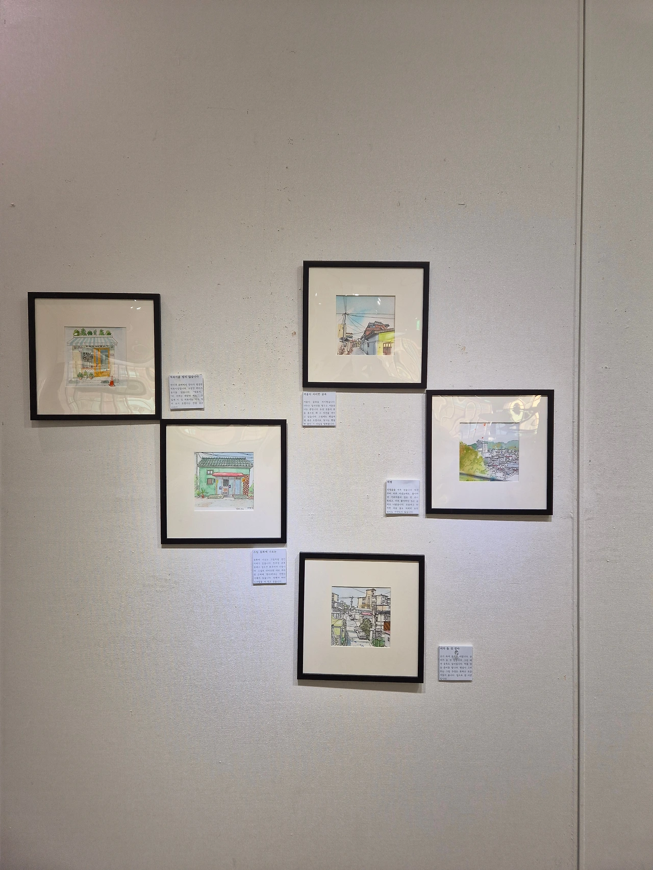 그래도 어제 그렇게 고생고생해서 옮기고, 작품 제 자리 찾고, 걸고, 준비해 놓고 안 챙긴 건 다이소까지 갔다 오고, 설명 문구 칼로 자르고 우드록에 붙이고 벽에 박으며 애를 쓰고 나니 오늘은 뿌듯함만 남네요. 의자에 앉아서 아무것도 하지 않고 책만 읽어도 왠지 빈둥거린 거 같지 않고요. (그 덕에 오늘 '마음의 문제'를 완독했습니다)