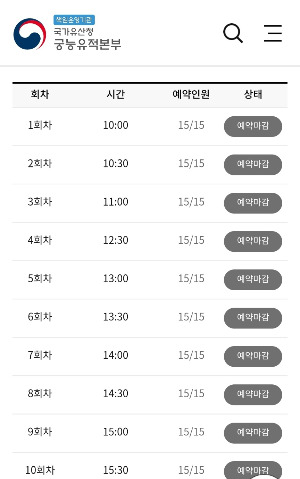 아니나 다를까, 이 소식을 듣고 바로 예약을 시도해 봤는데, 평일인데도 6월 말까지 모두 예약이 마감되어 있었습니다. 날씨 좋은 봄날, 왕비의 삶을 함께 느껴보고 싶은 분들이 많았던 것 같은데요. 저도 여러 번 시도 끝에 결국 예약에 성공해서 다녀왔습니다.